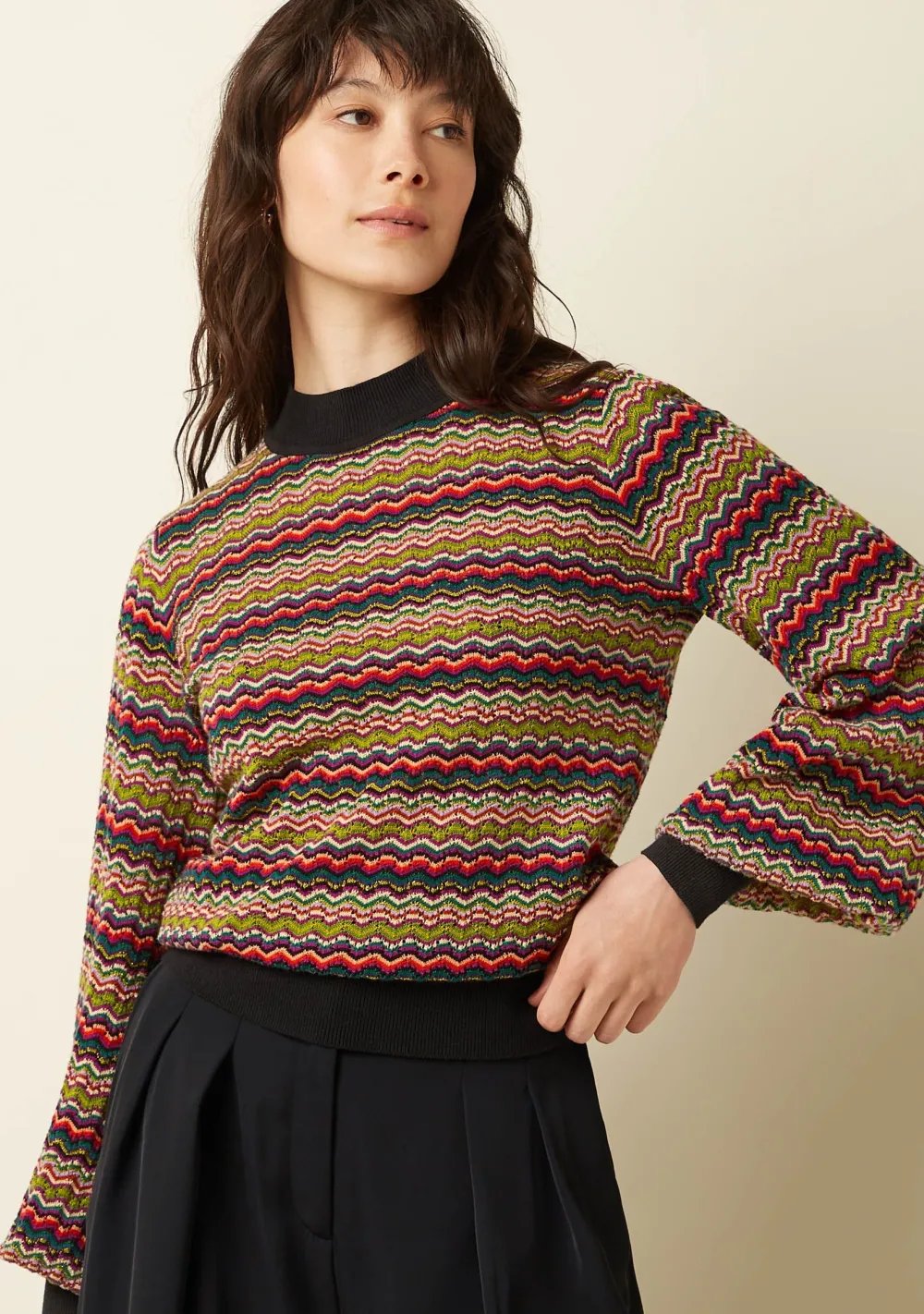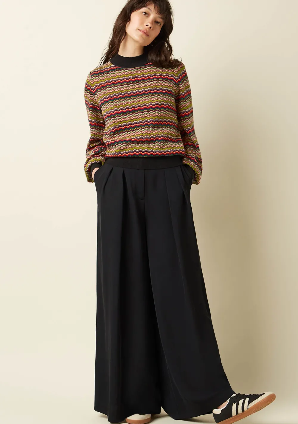 – Het model is 1.74m lang en draagt maat S