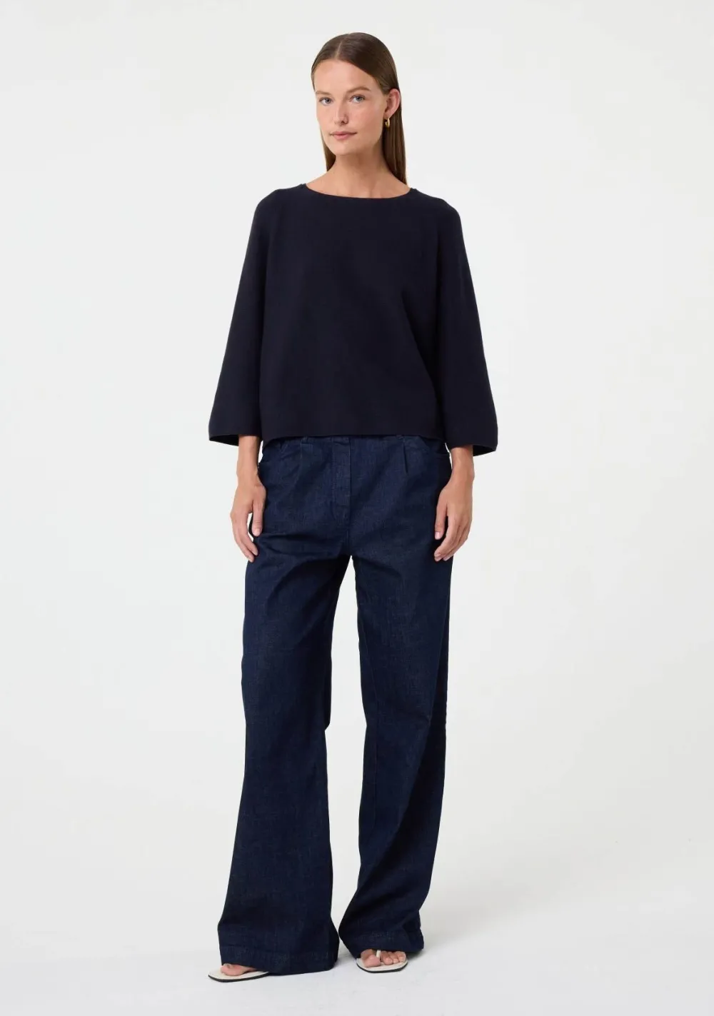– Het model is 1.76m lang en draagt maat S