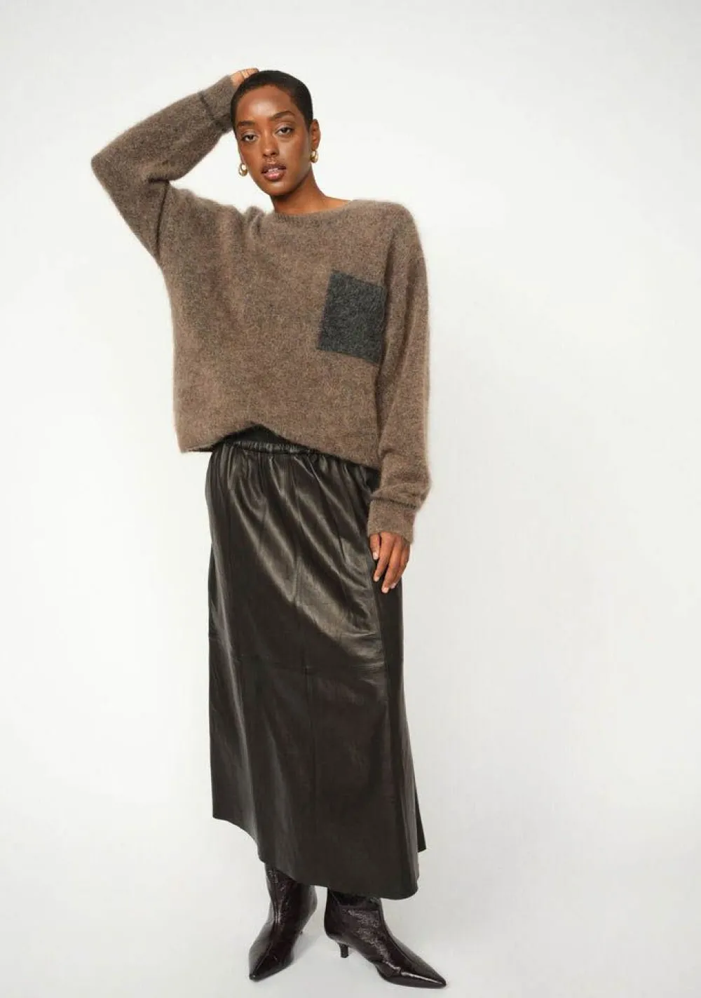 – Het model is 1.76m lang en draagt maat S