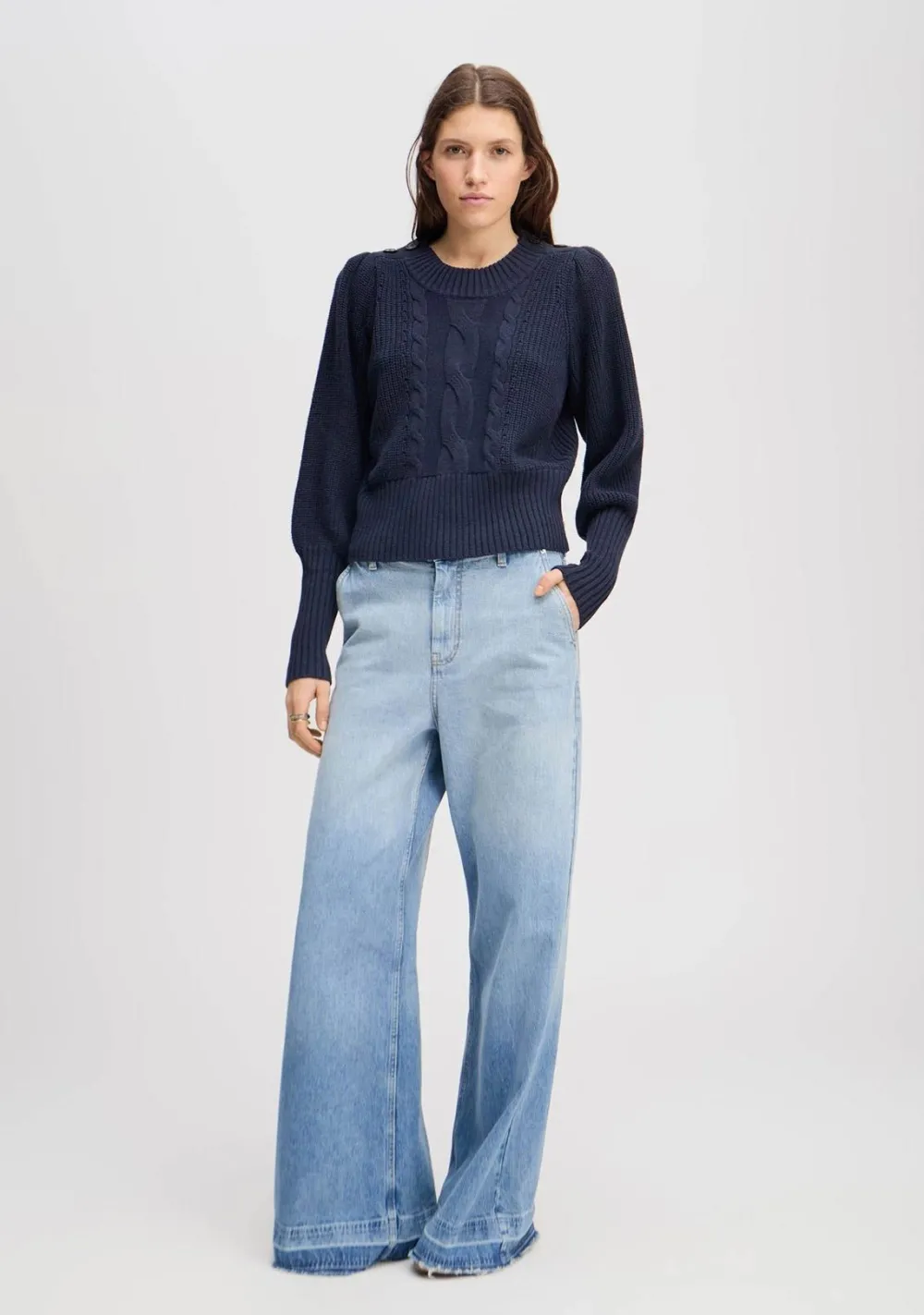 – Het model is 1.79m lang en draagt maat 36