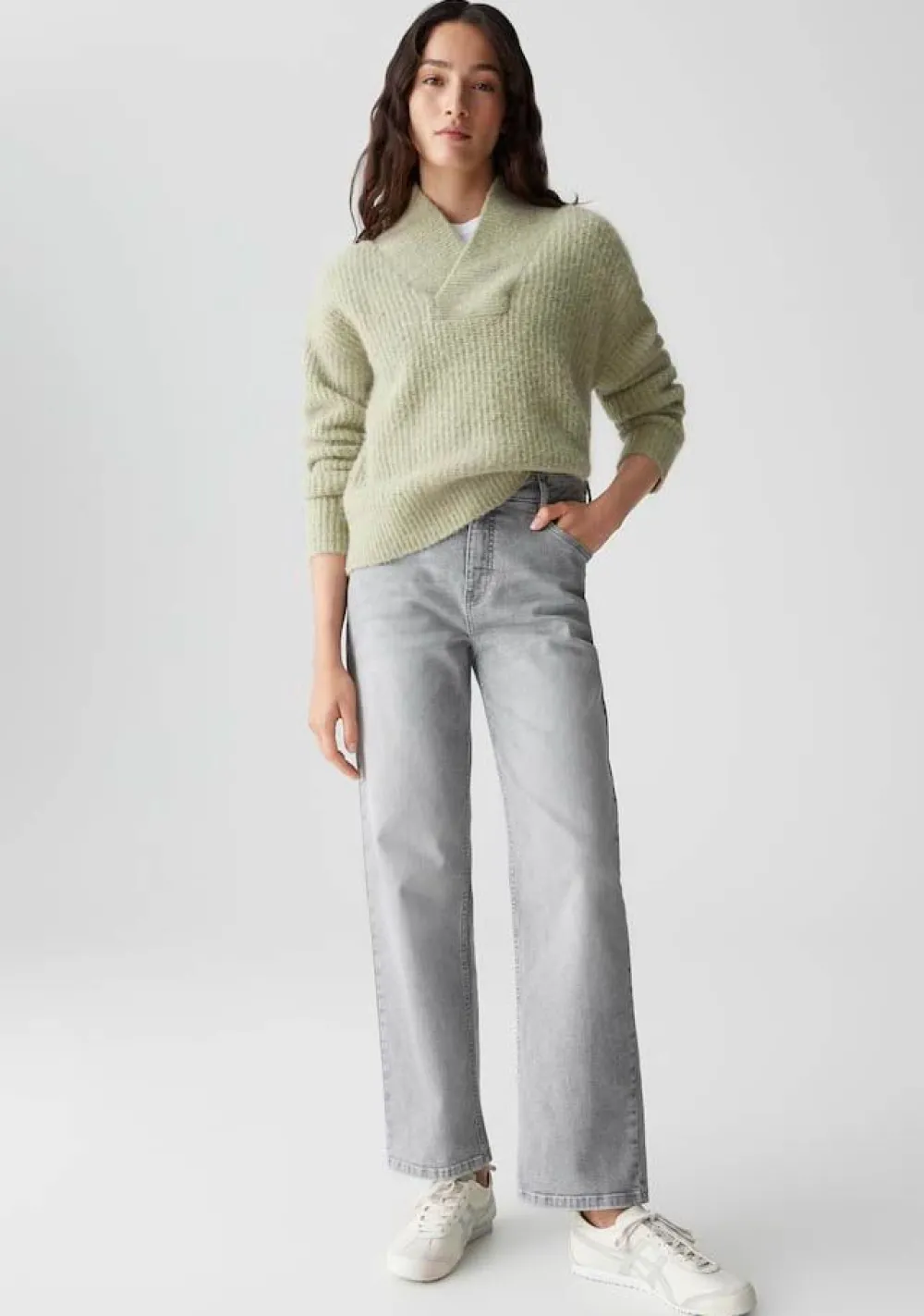 – Het model is 1.76m lang en draagt maat 36