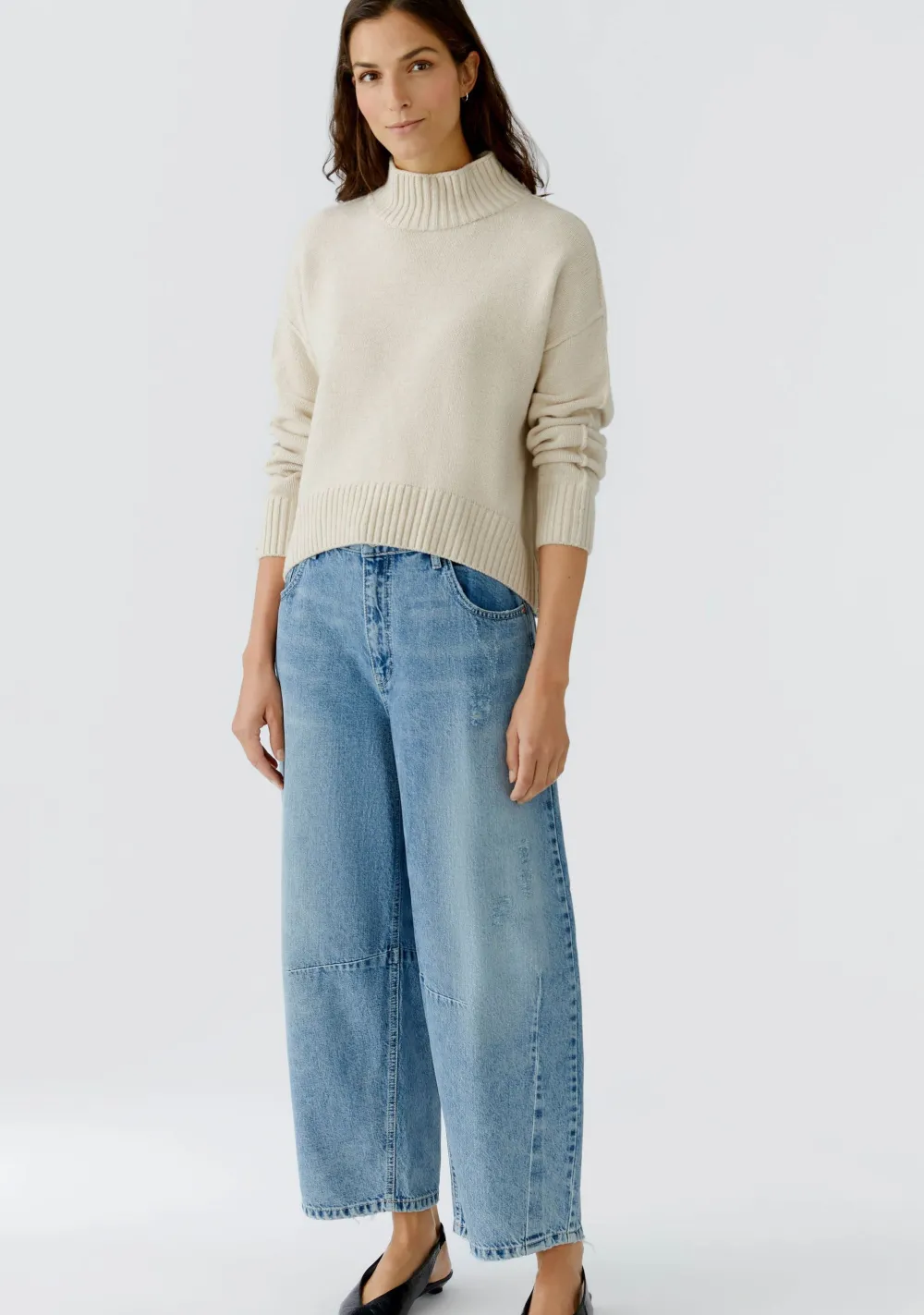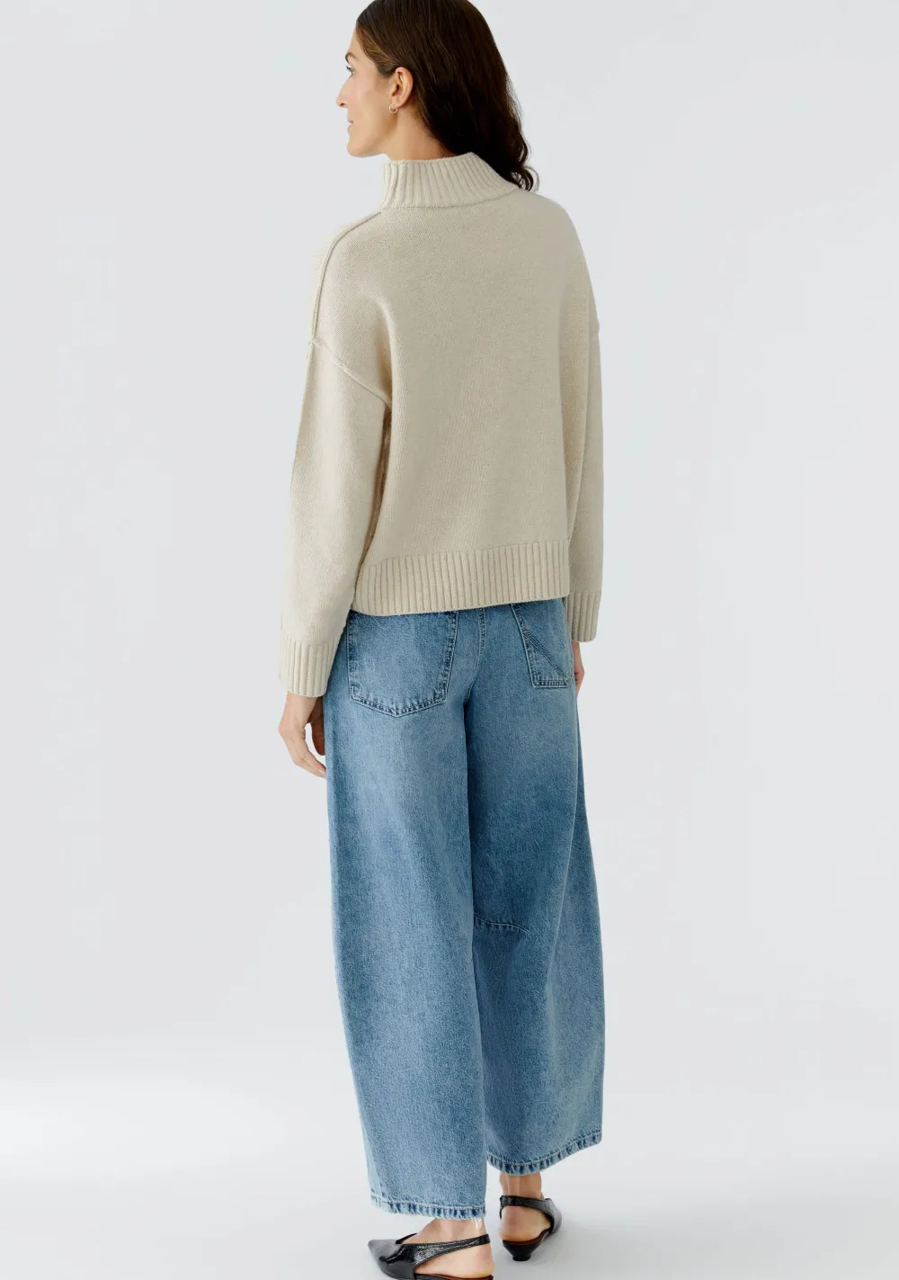 – Het model is 1.76m lang en draagt maat 36