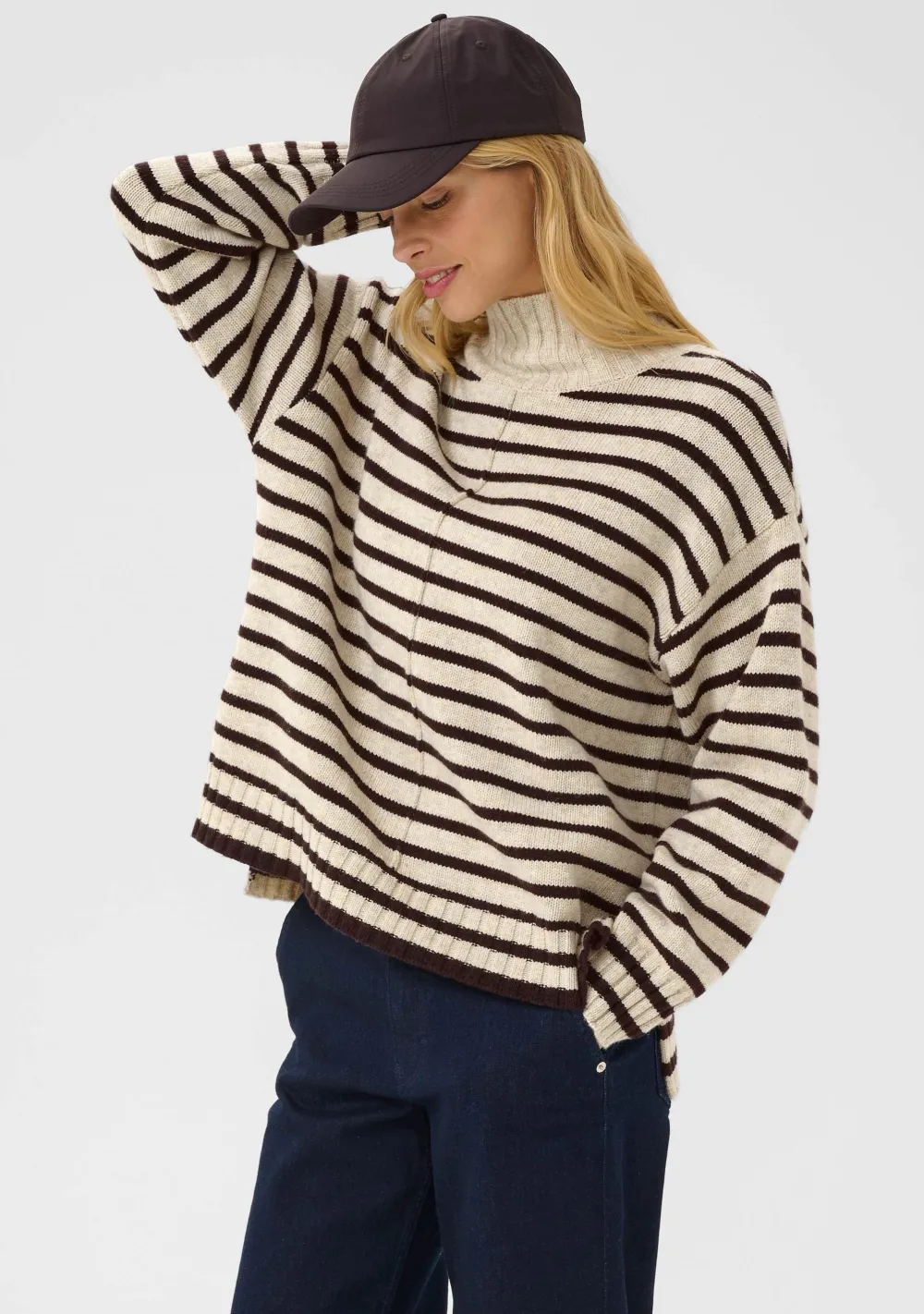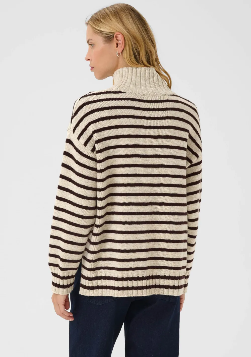 – Het model is 1.76m lang en draagt maat S