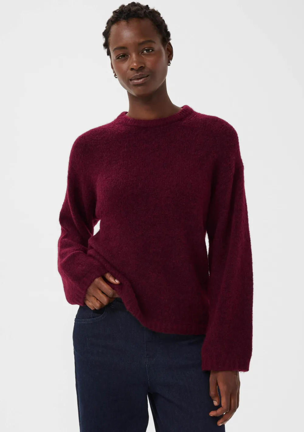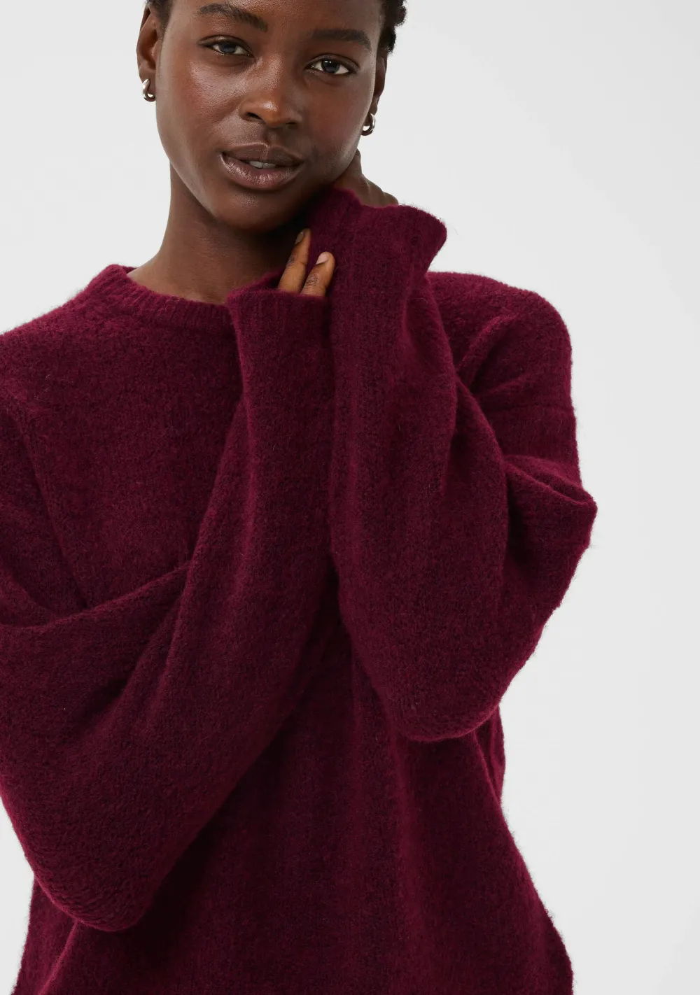 – Het model is 1.76m lang en draagt maat 36