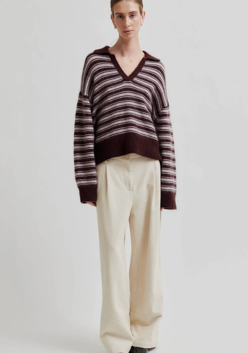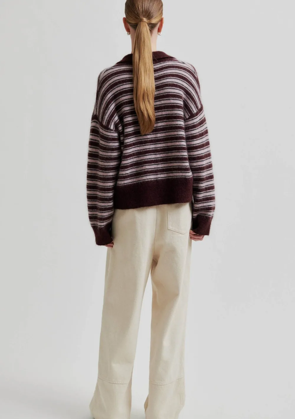 – Het model is 1.76m lang en draagt maat XS