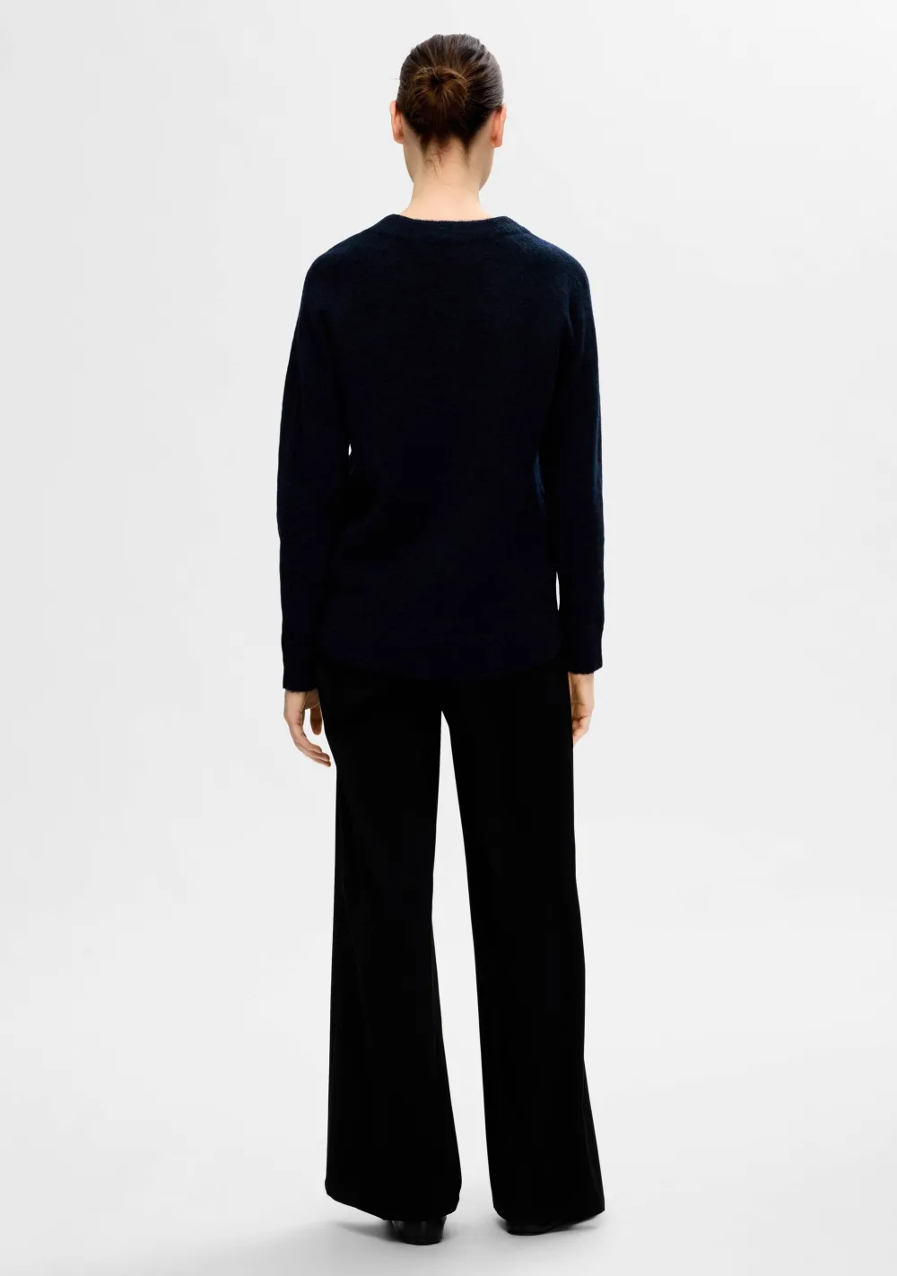 – Het model is 1.76m lang en draagt maat S