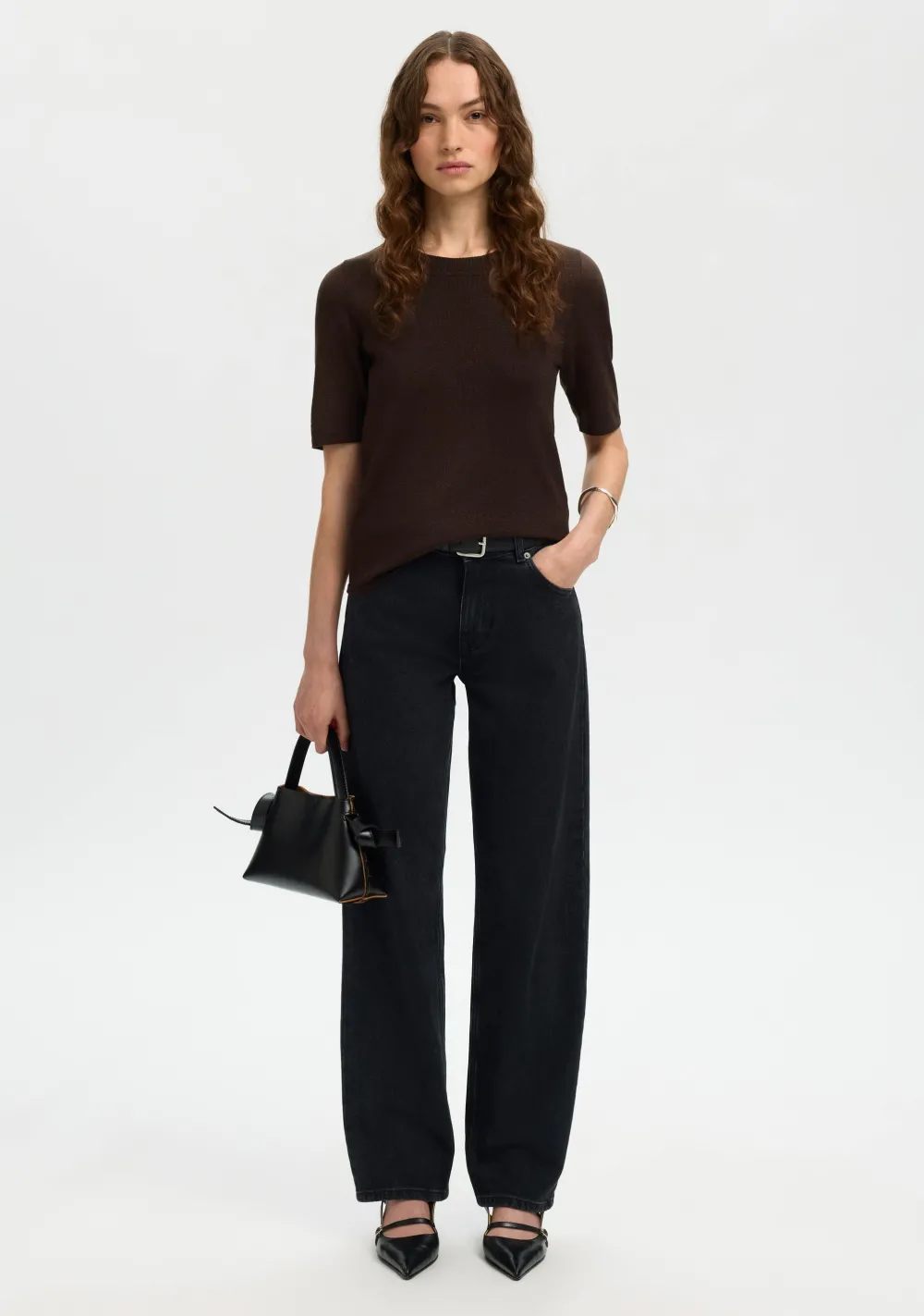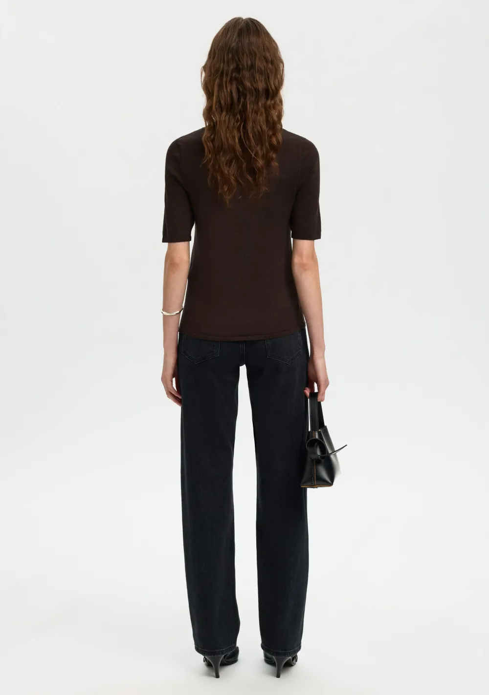 – Het model is 1.76m lang en draagt maat S