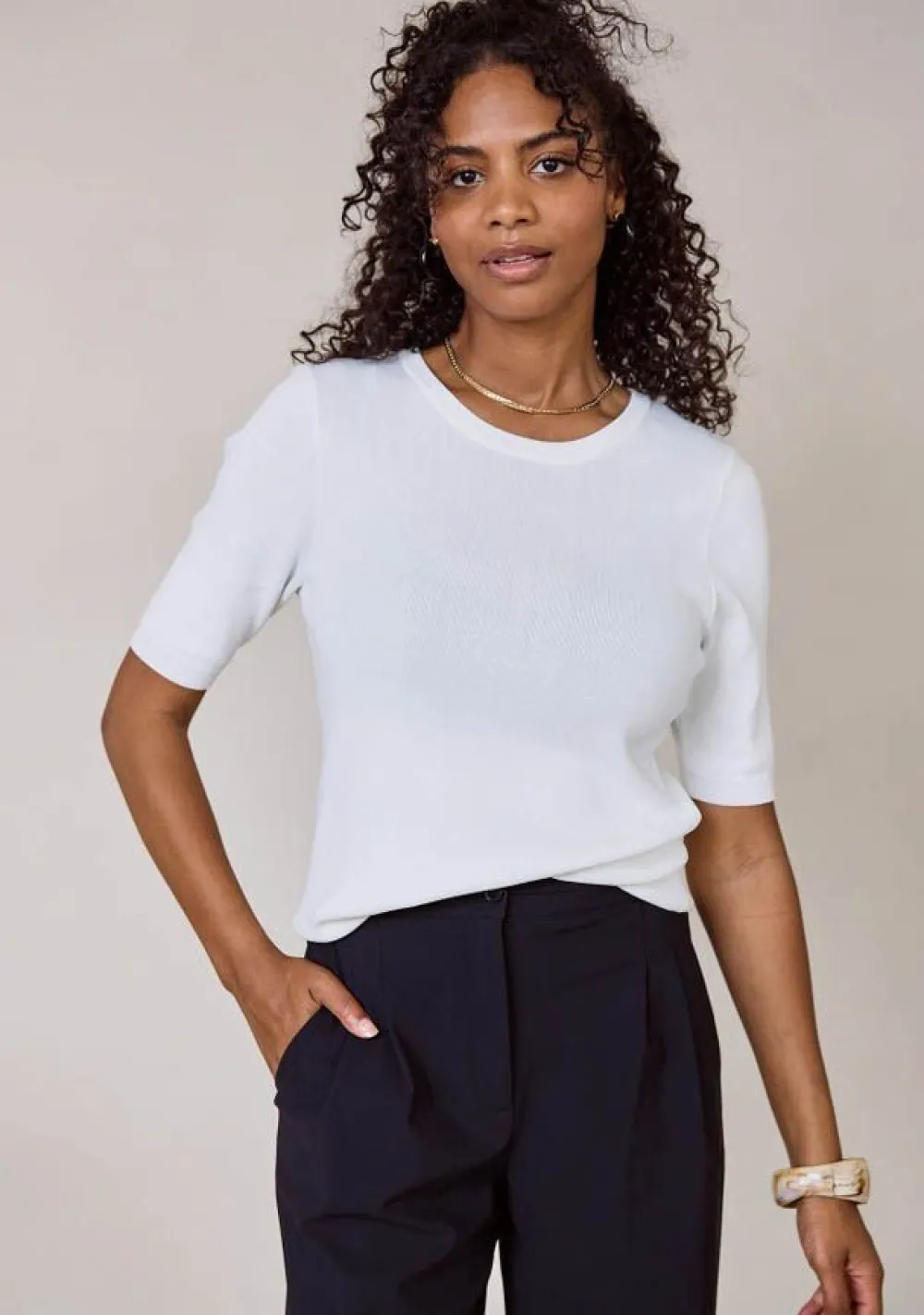 Met een lengte van 60 cm vanaf de schouder is dit topje de ideale lengte voor een veelzijdige look. Of je het nu in je broek stopt of er lekker nonchalant overheen draagt, de lengte zorgt voor een elegante uitstraling. Het model is 1.76 meter lang en draagt maat S, zodat je kunt zien hoe dit topje past.