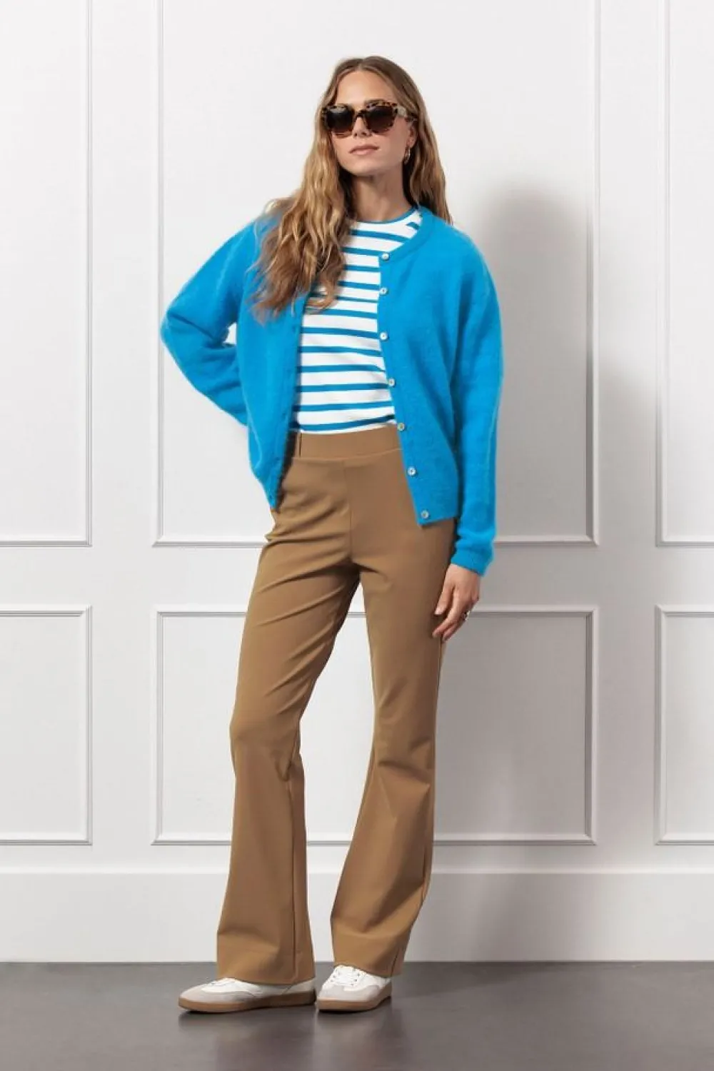 – Het model is 1.79m lang en draagt maat S