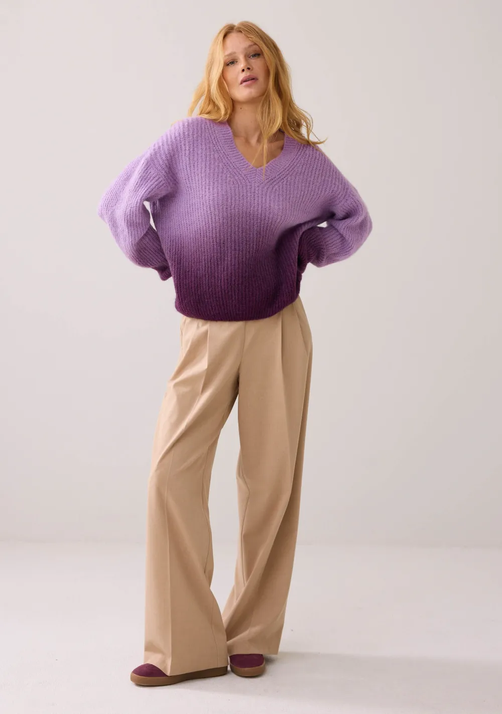 – Het model is 1.76m lang en draagt maat 36