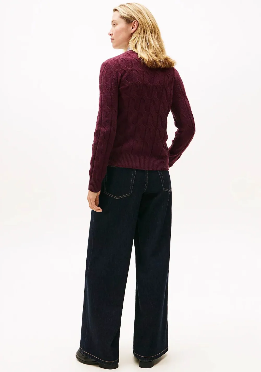 – Het model is 1.76m lang en draagt maat S