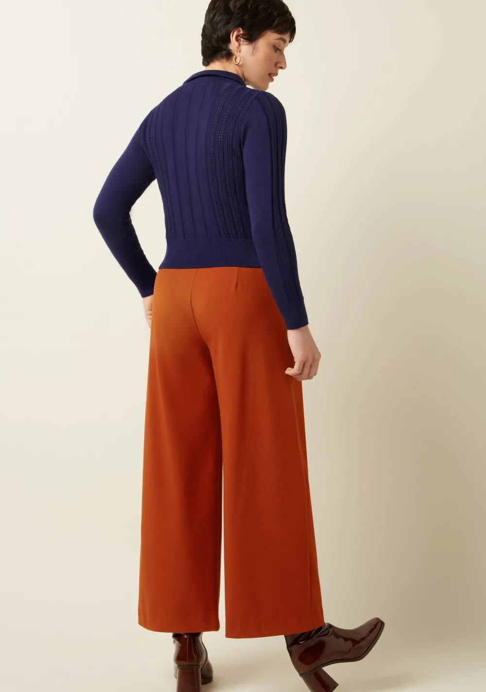 – Het model is 1.74m lang en draagt maat S