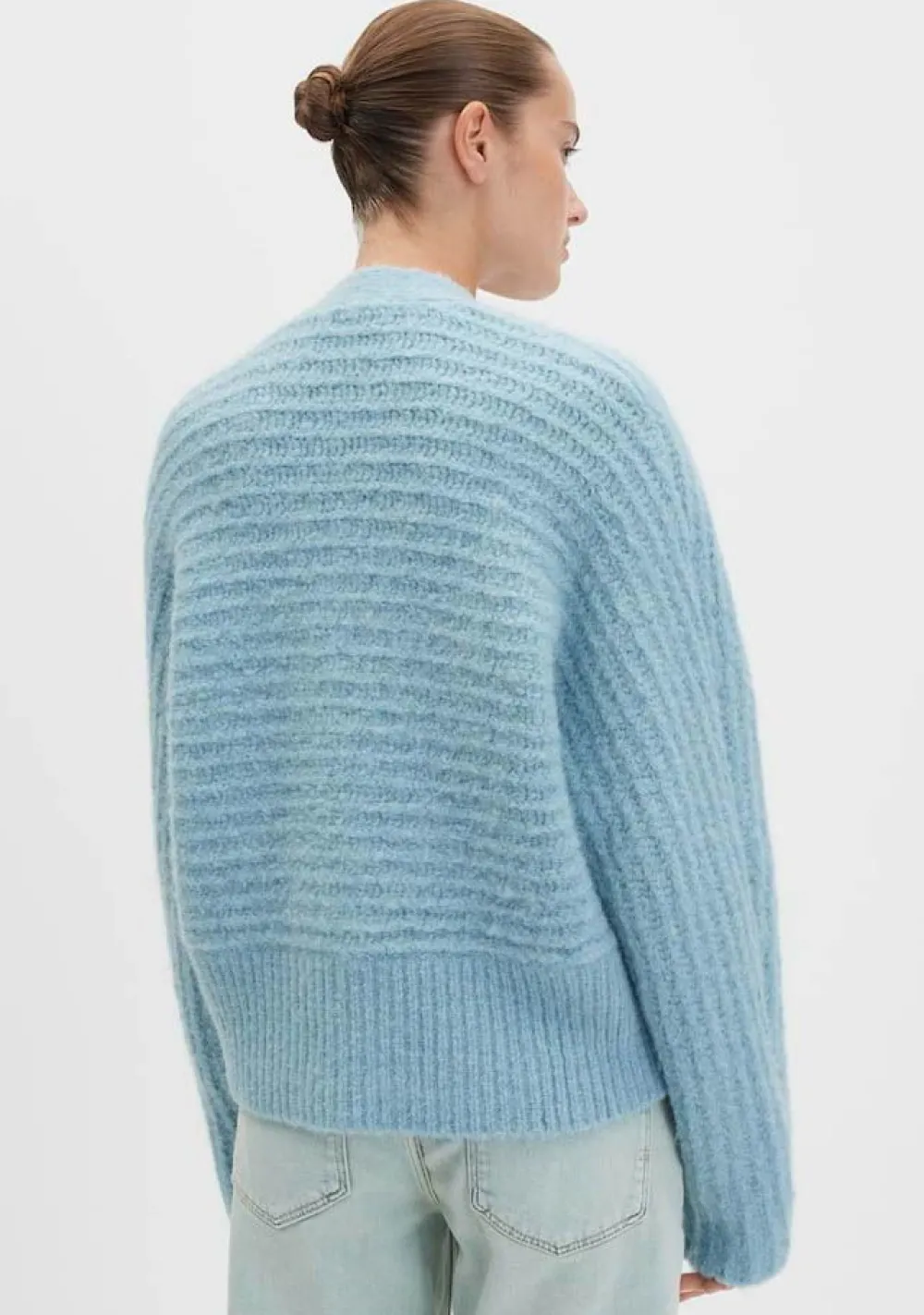 – Het model is 1.76m lang en draagt maat S
