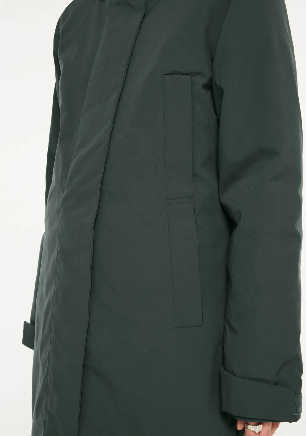 Let op: de kleur van de groene jas kan op de foto’s afwijken. De jas is in werkelijkheid kaki van kleur, maar kan op de foto’s soms een bruine tint lijken te hebben.