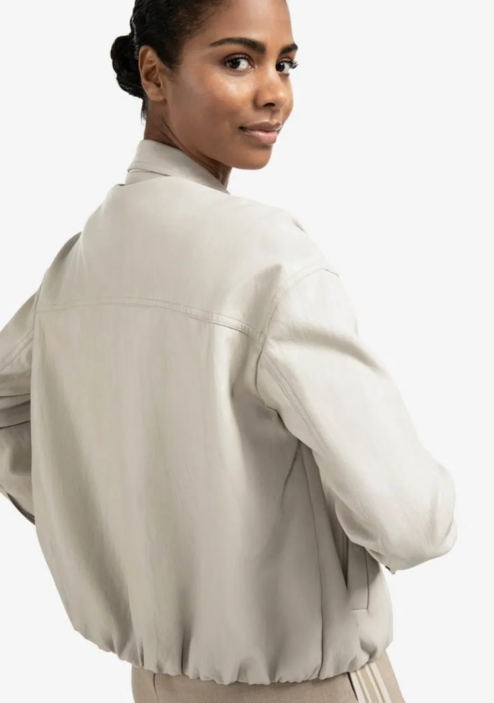– Het model is 1.76m lang en draagt maat 36