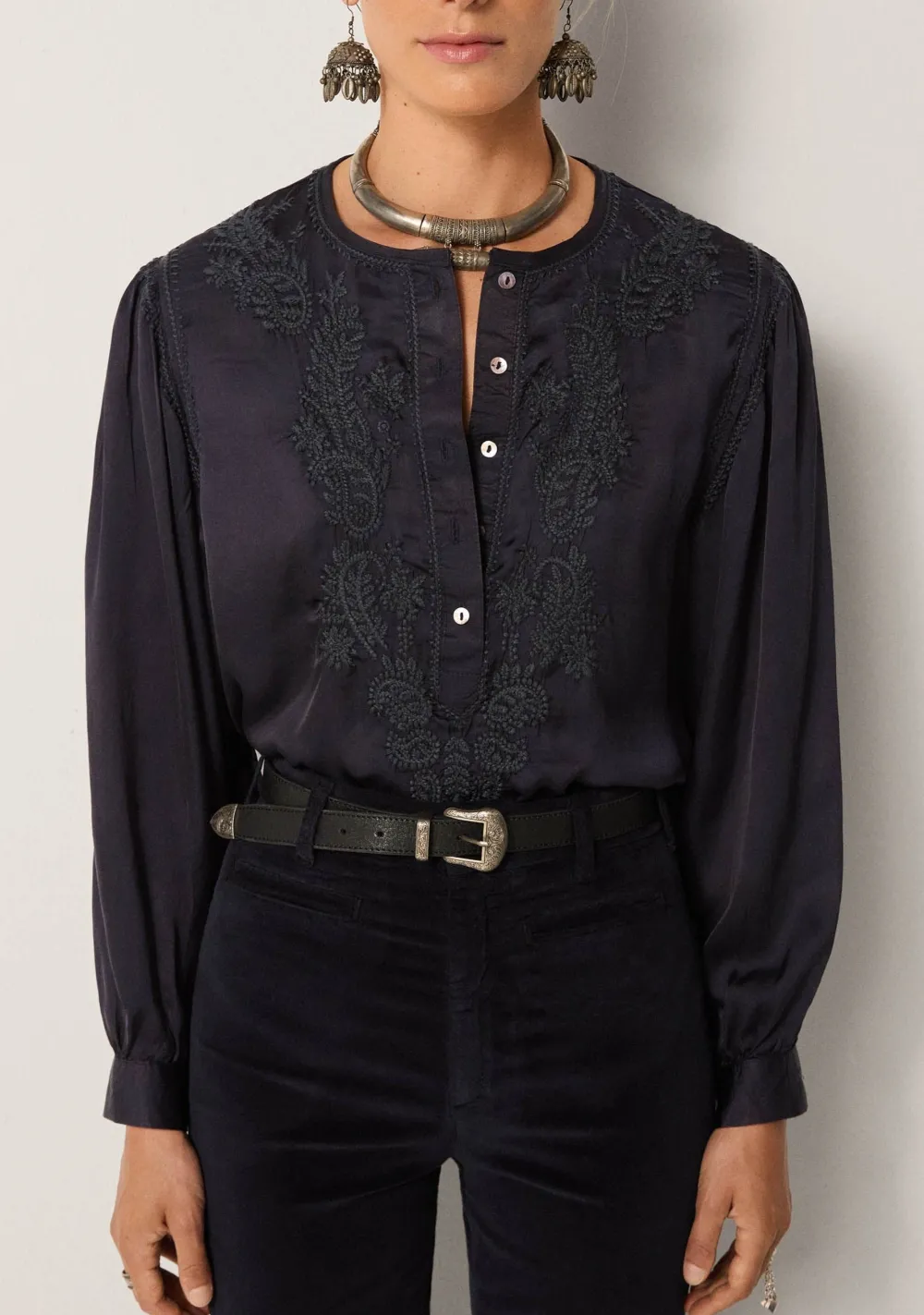 – Het model is 1.76m lang en draagt maat S