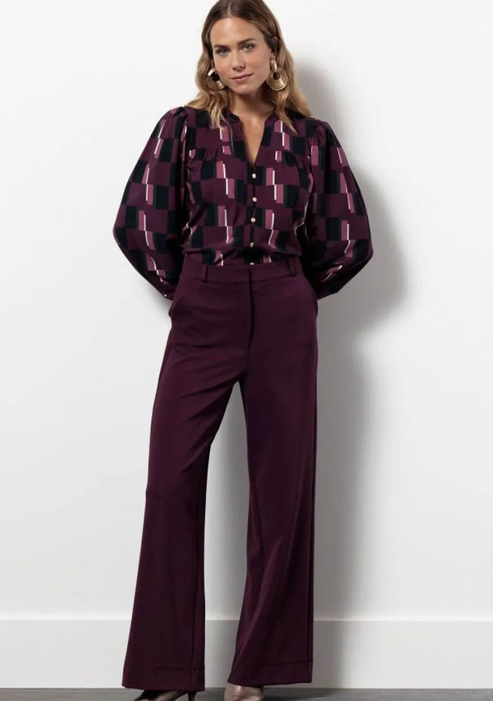 – Het model is 1.79m lang en draagt maat S