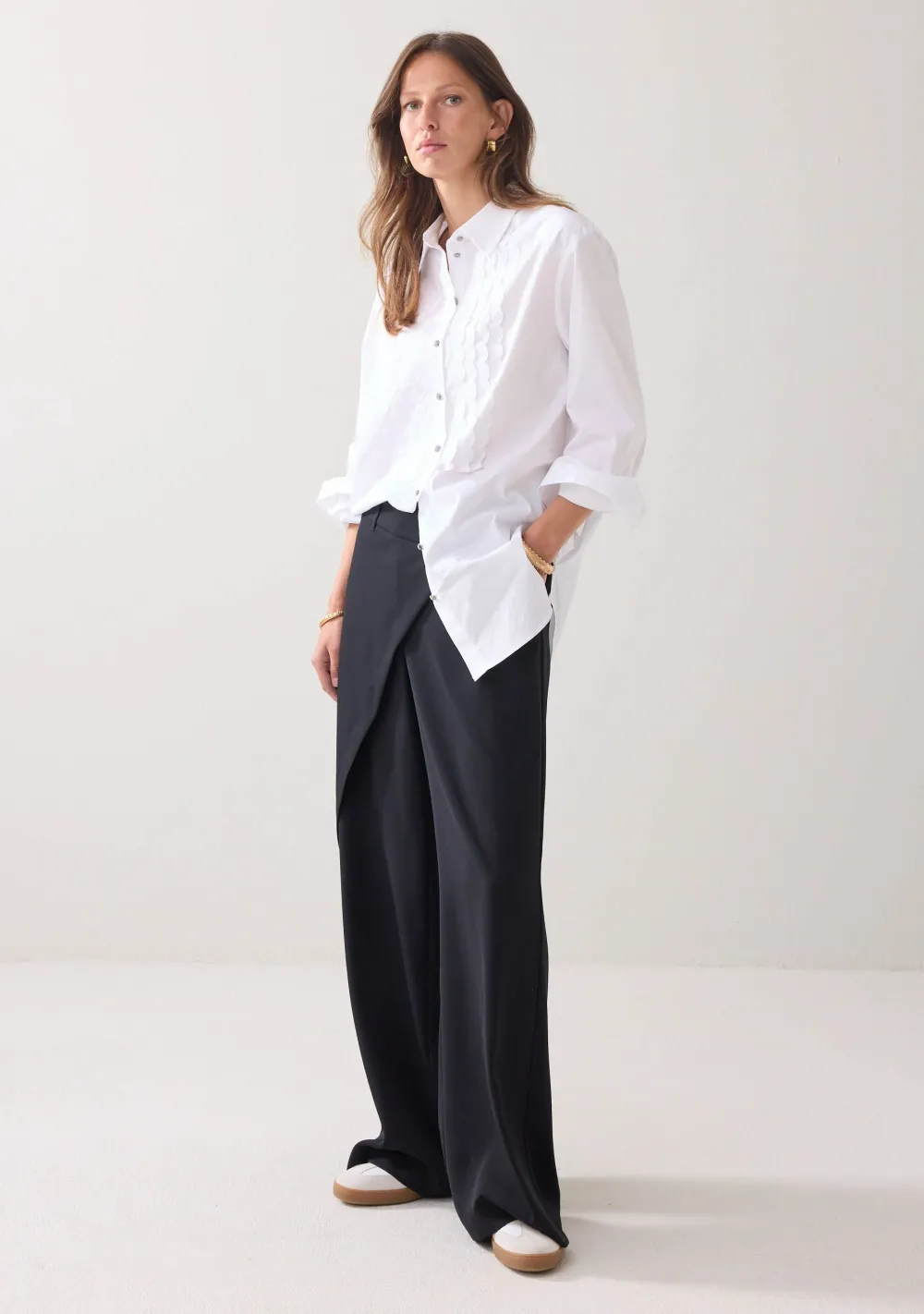 – Het model is 1.77m lang en draagt maat 36