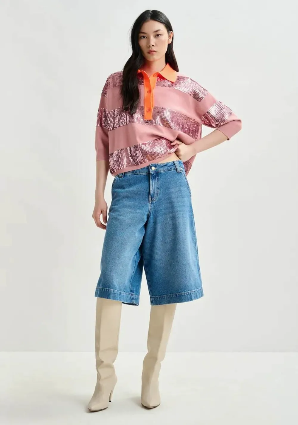 – Het model is 1.77m lang en draagt maat 27