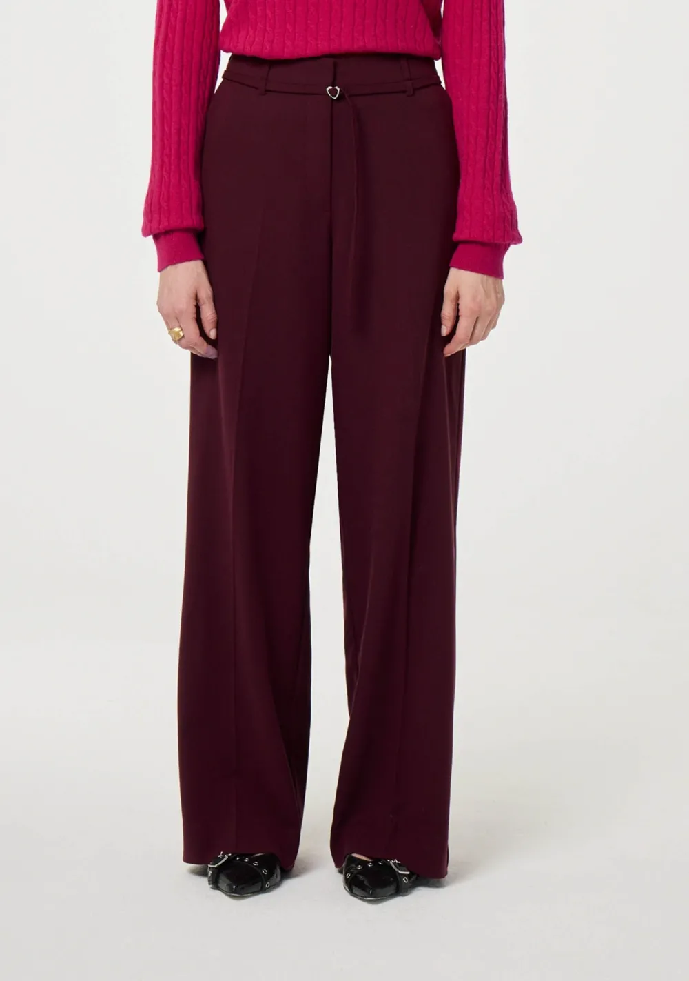 – Het model is 1.80m lang en draagt maat 36