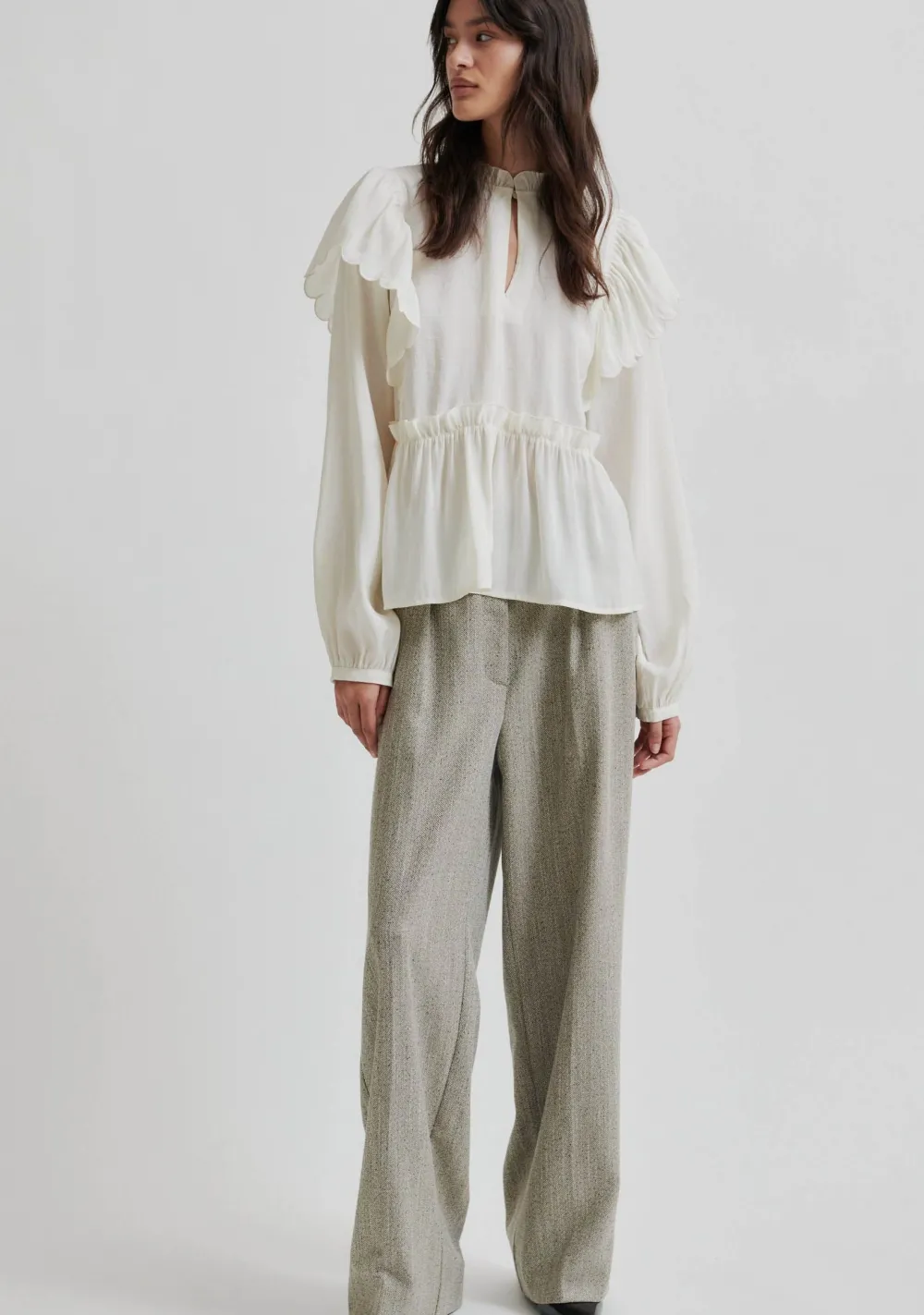 – Het model is 1.76m lang en draagt maat XS