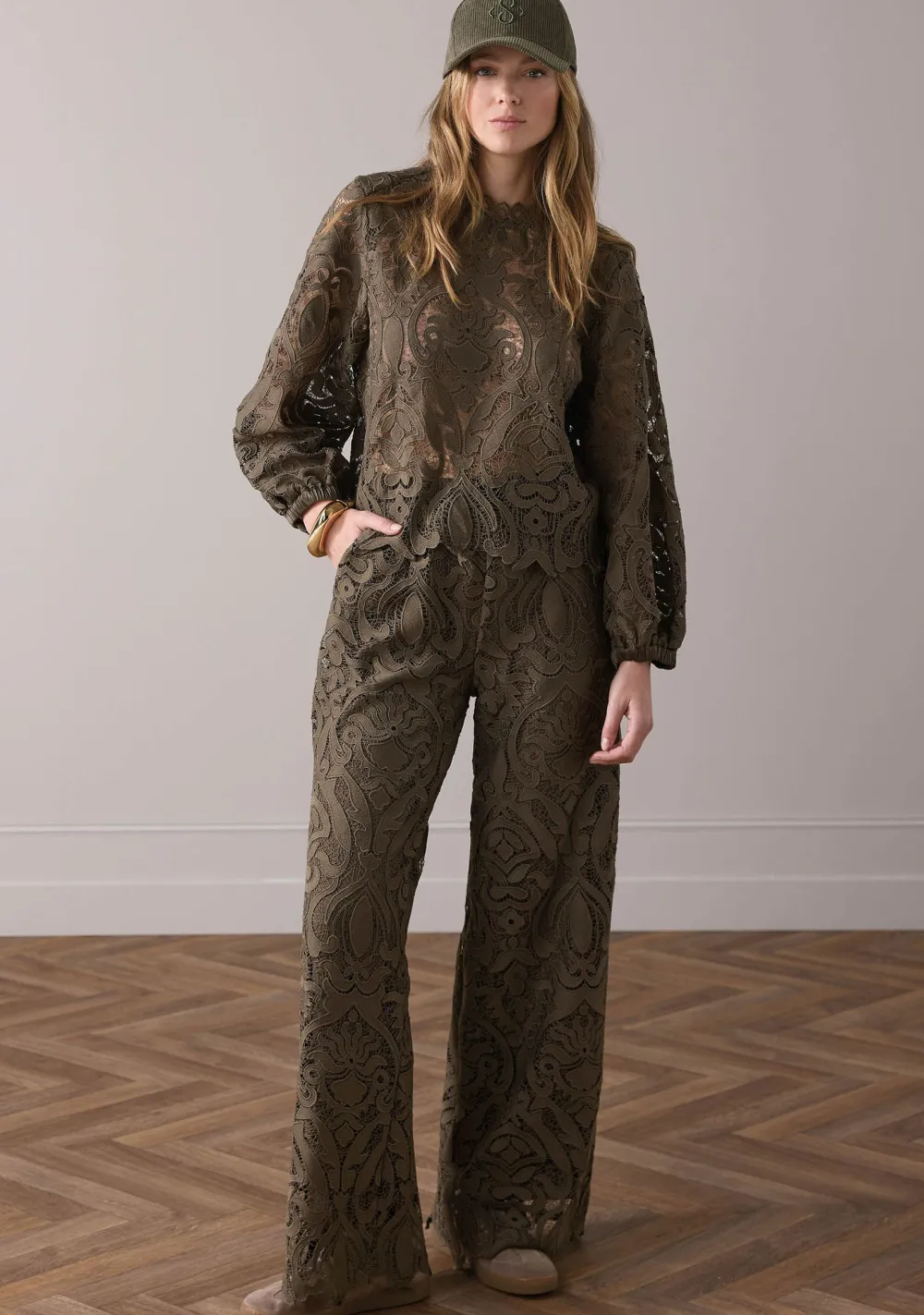 Let op: de kleur van de groene broek kan op de foto’s afwijken. De broek is in werkelijkheid kaki van kleur, maar kan op de foto’s soms een bruine tint lijken te hebben.