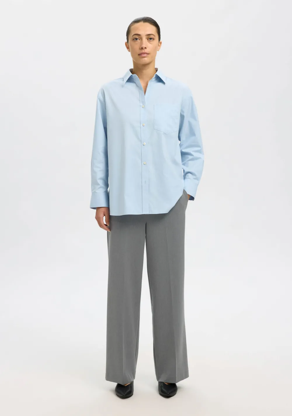 – Het model is 1.76m lang en draagt maat 36