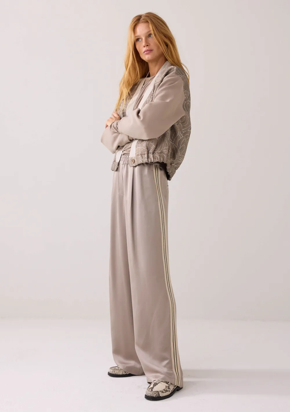 – Het model is 1.76m lang en draagt maat 36