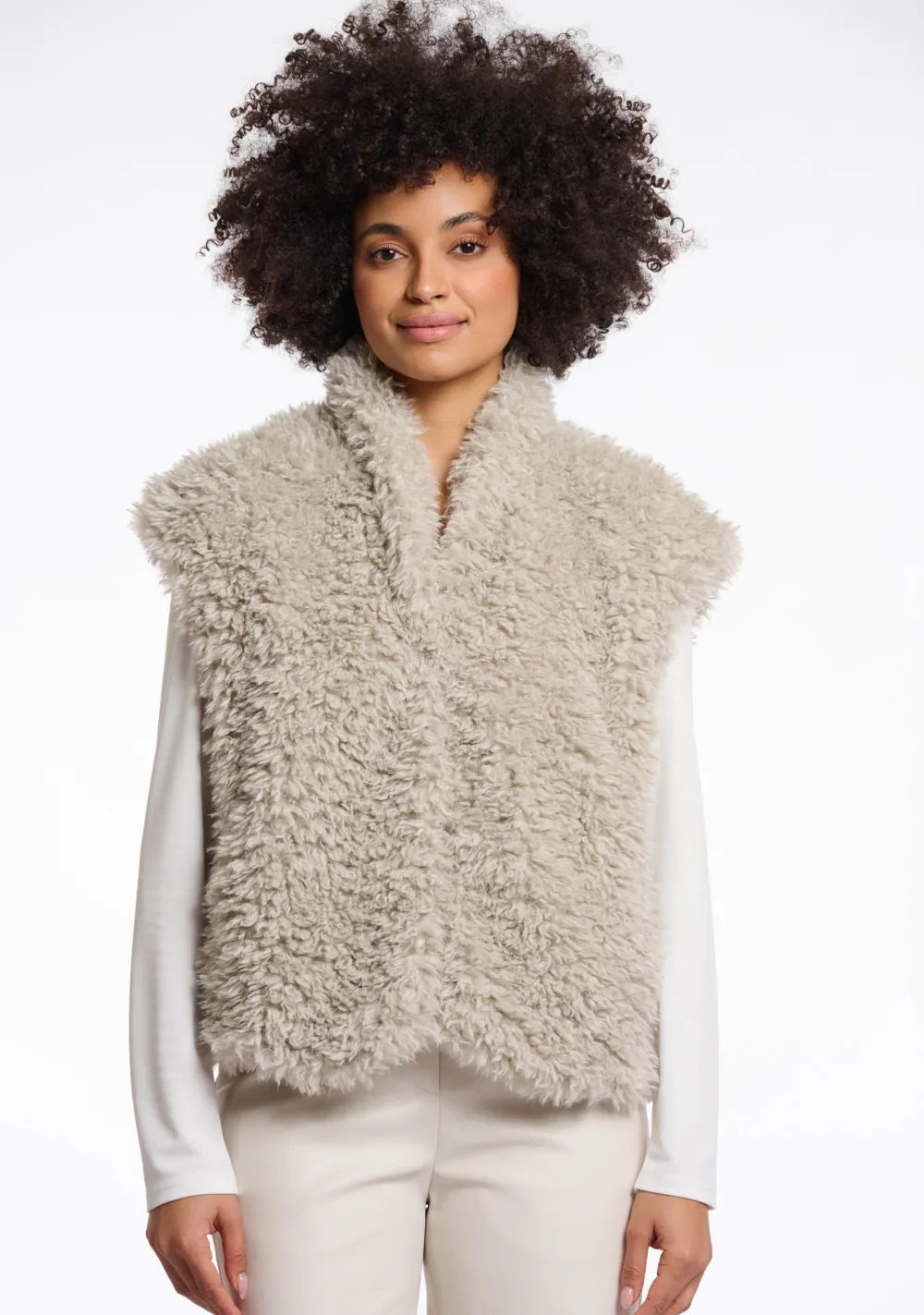 – Het model is 1.76m lang en draagt maat 36