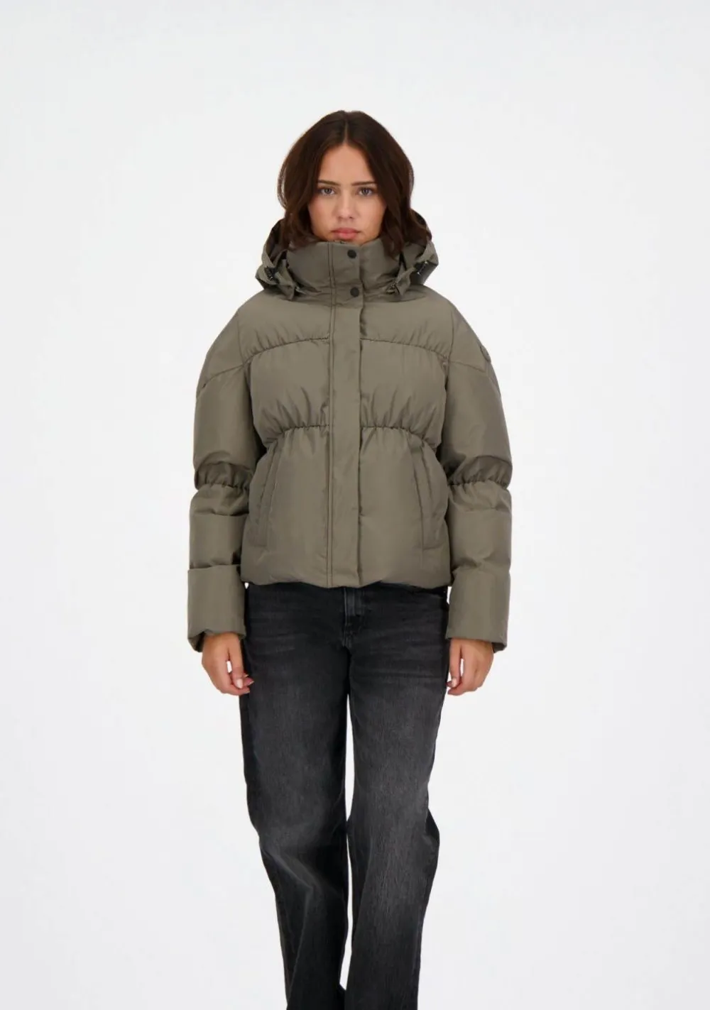 Let op: de kleur van de groene jas kan op de foto’s afwijken. De jas is in werkelijkheid kaki van kleur, maar kan op de foto’s soms een bruine tint lijken te hebben.
