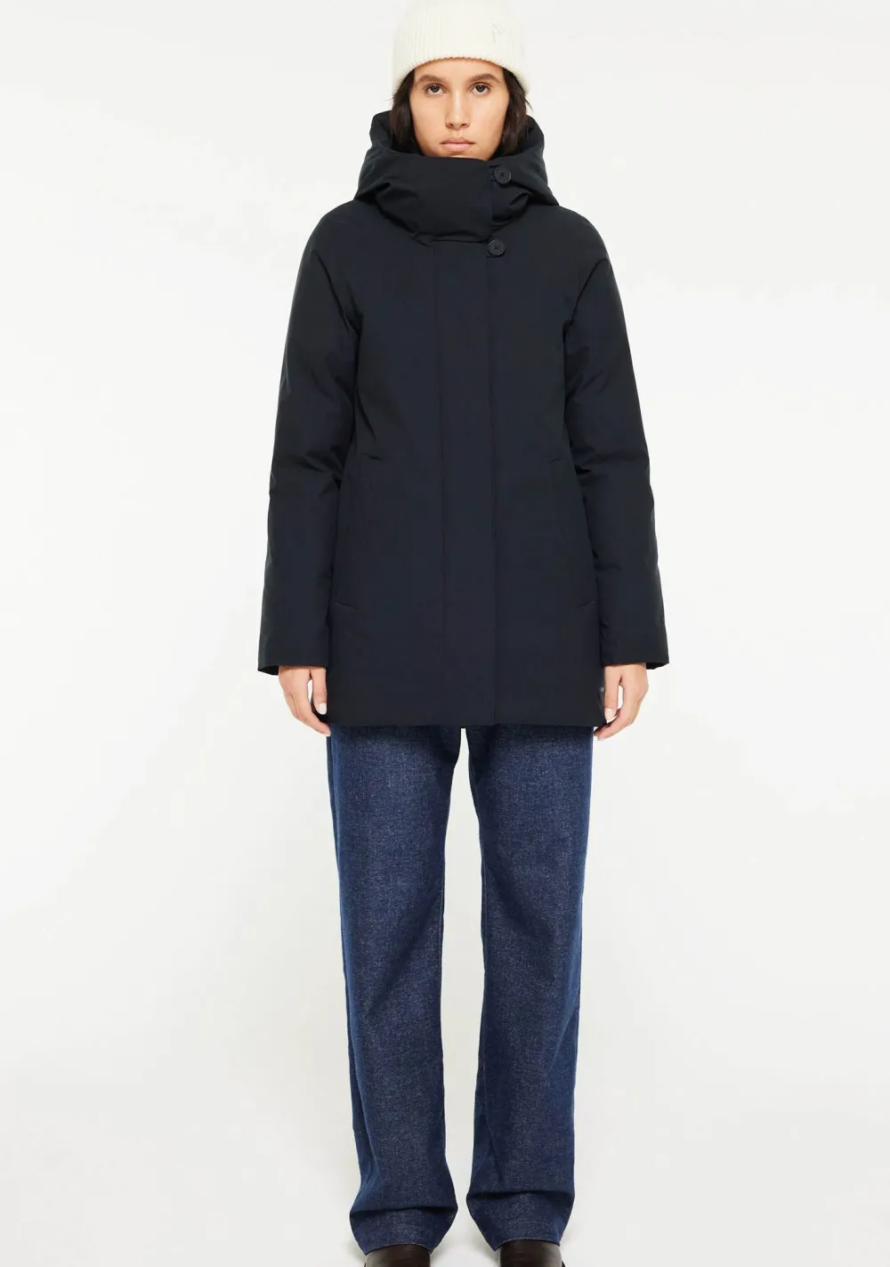 – Het model is 1.73m lang en draagt maat S