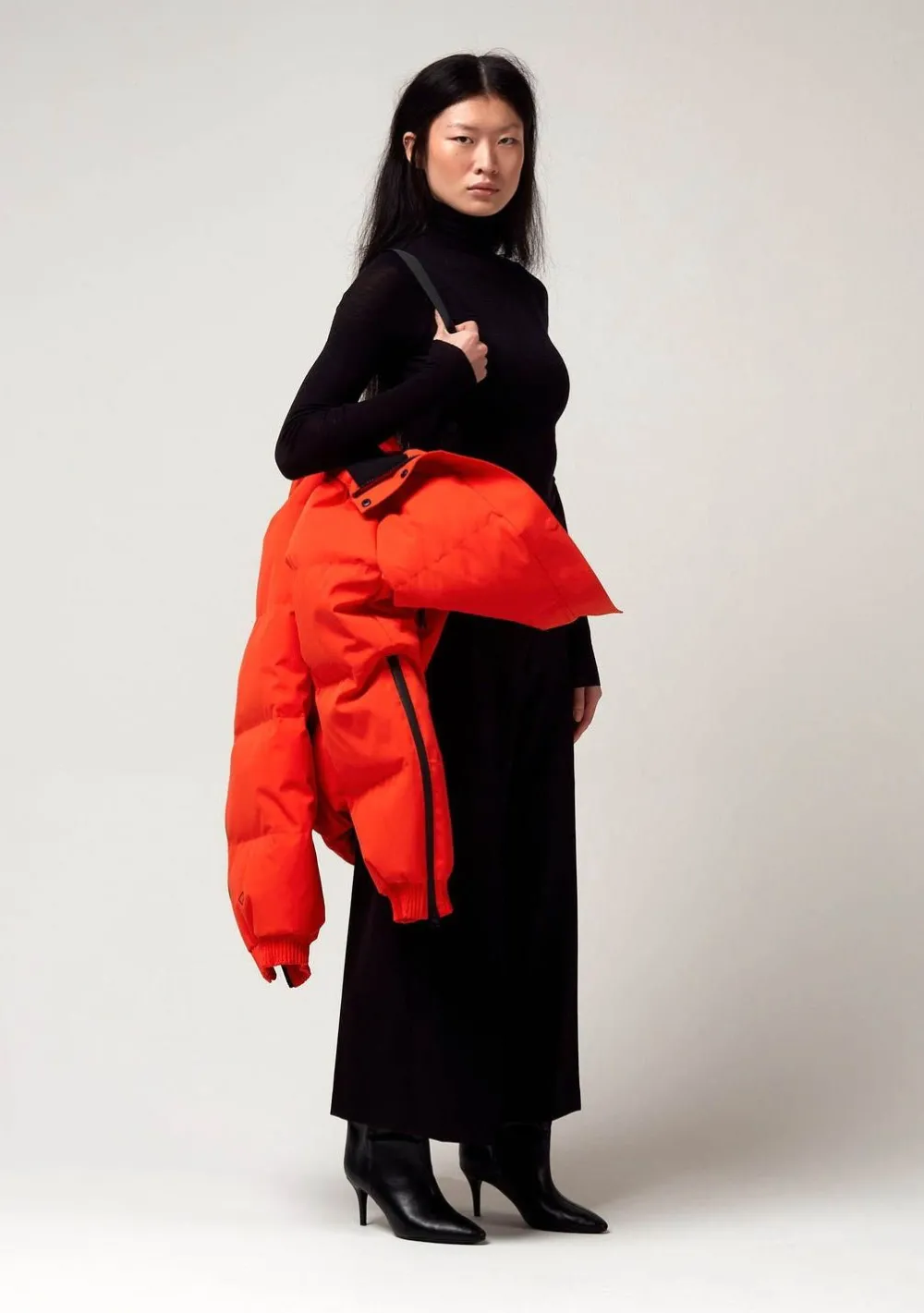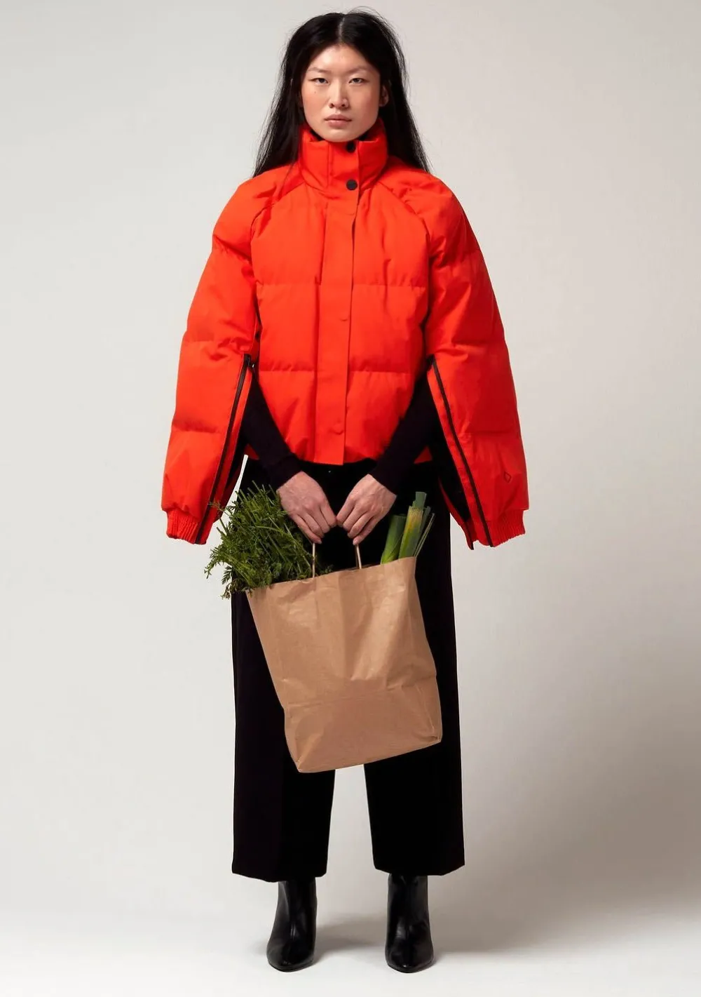 – Het model is 1.76m lang en draagt maat S
