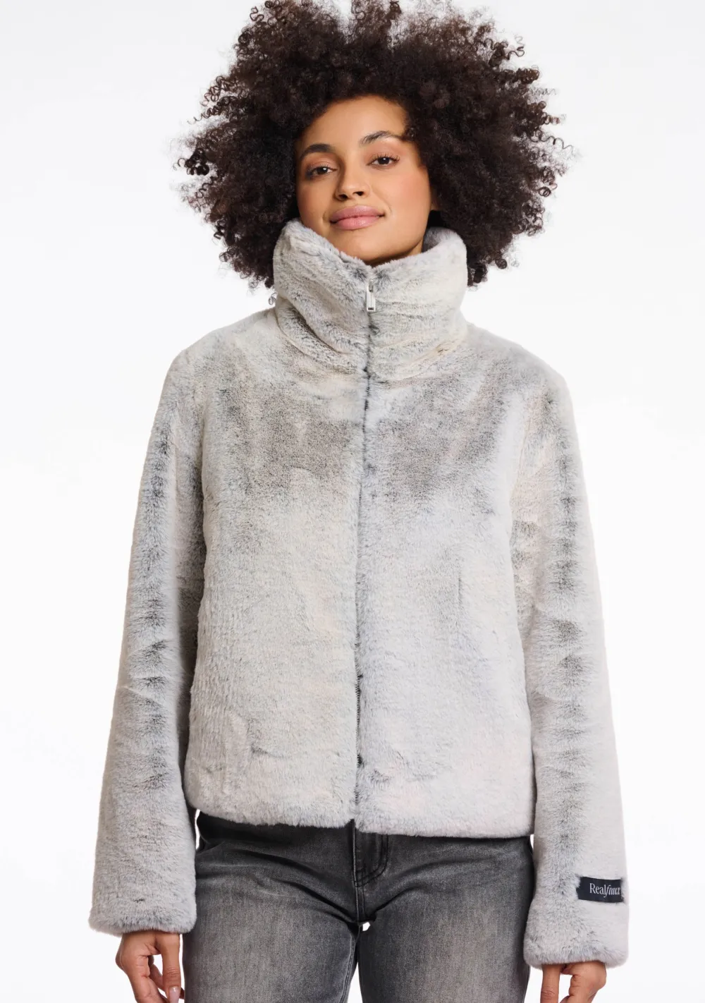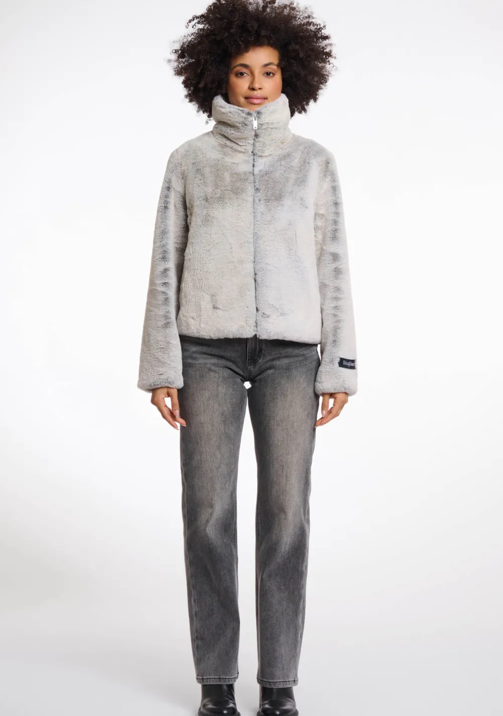 – Het model is 1.76m lang en draagt maat 36