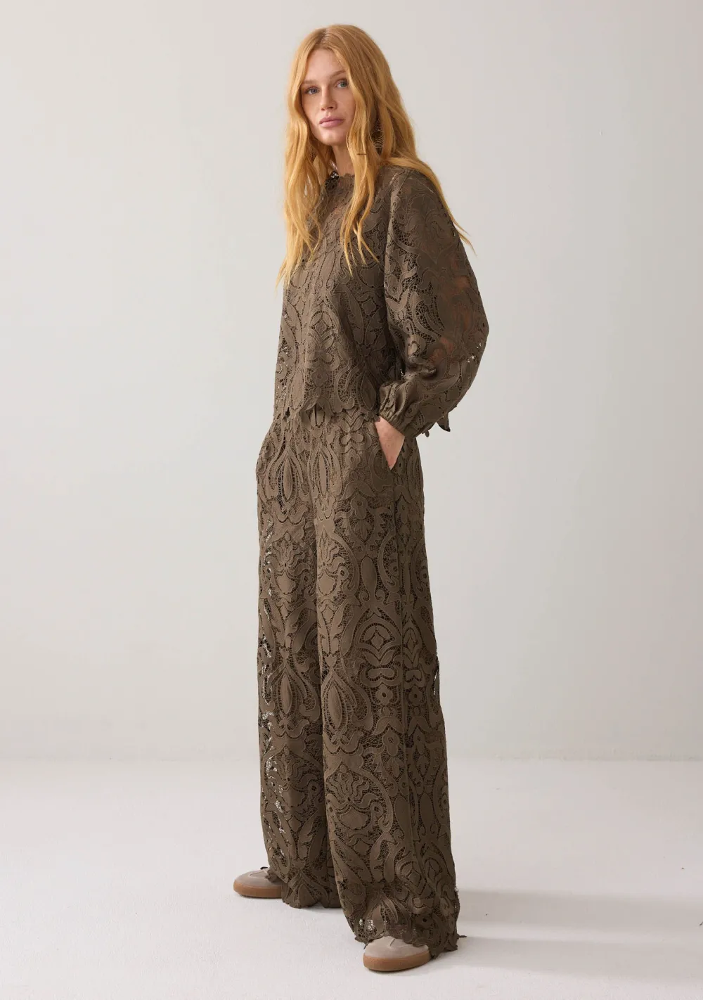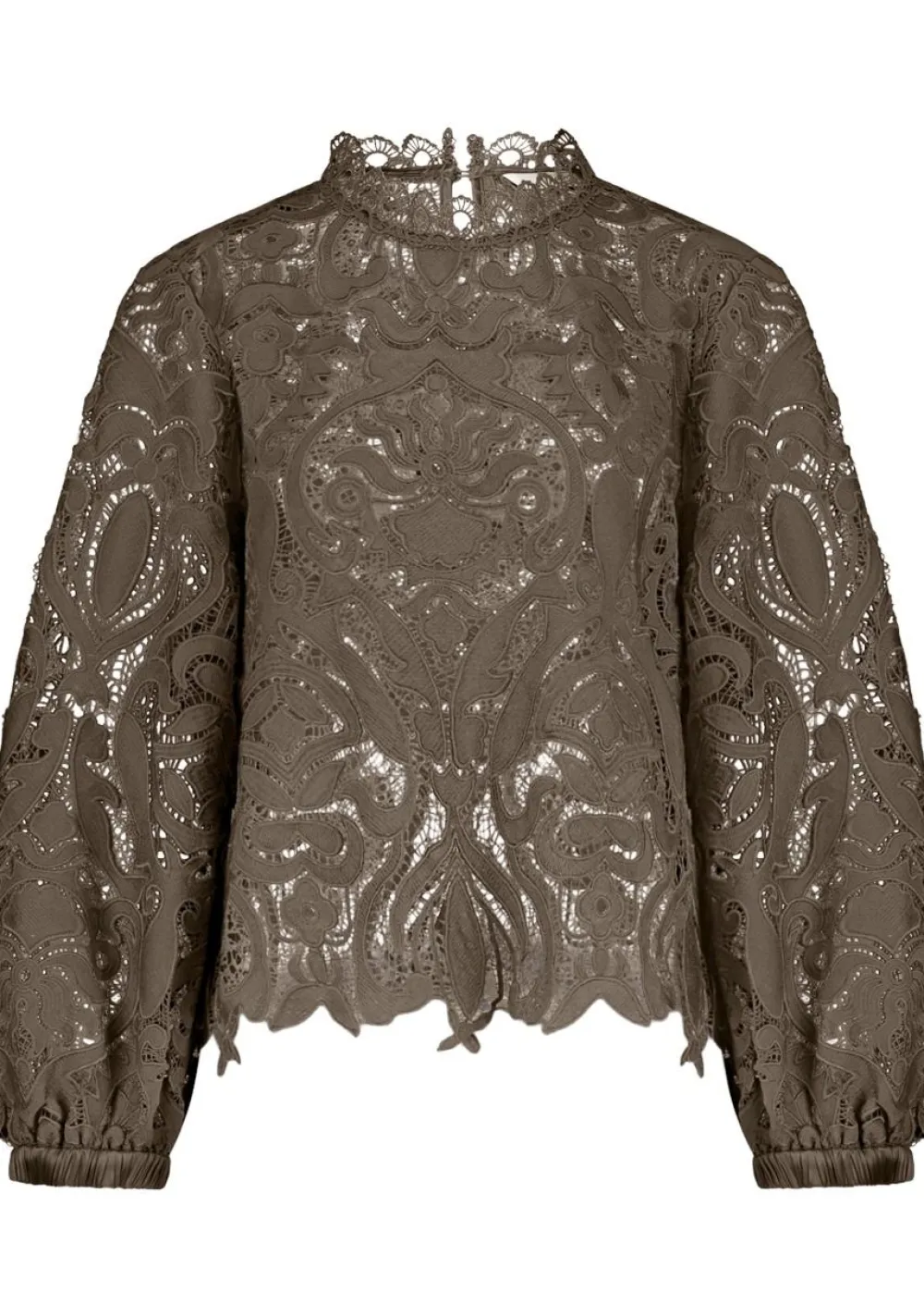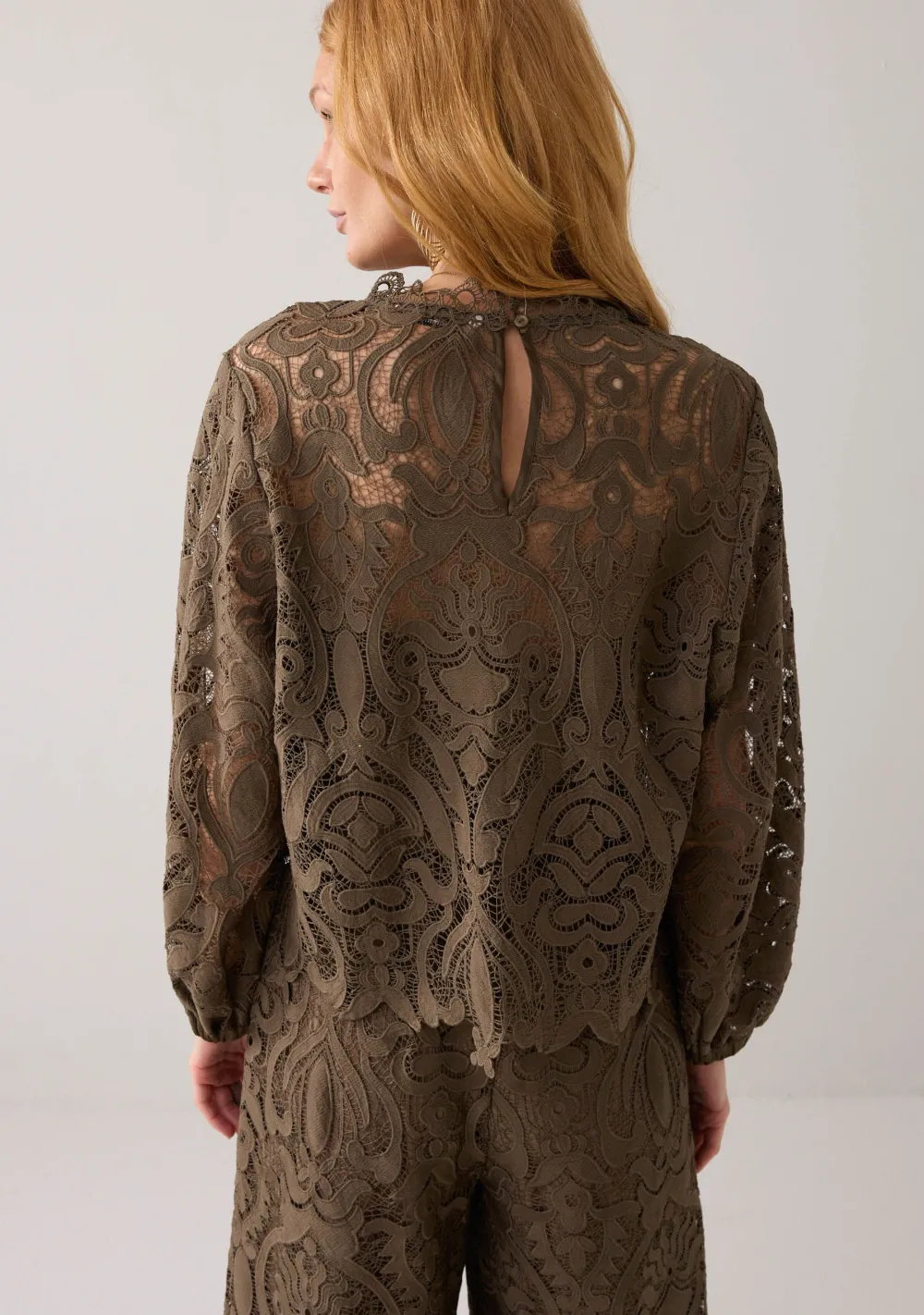 Let op: de kleur van de groene blouse kan op de foto’s afwijken. De blouse is in werkelijkheid kaki van kleur, maar kan op de foto’s soms een bruine tint lijken te hebben.