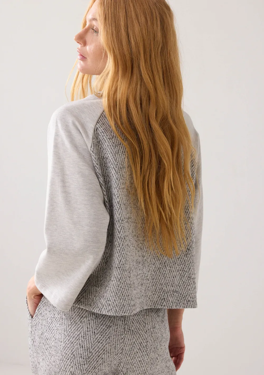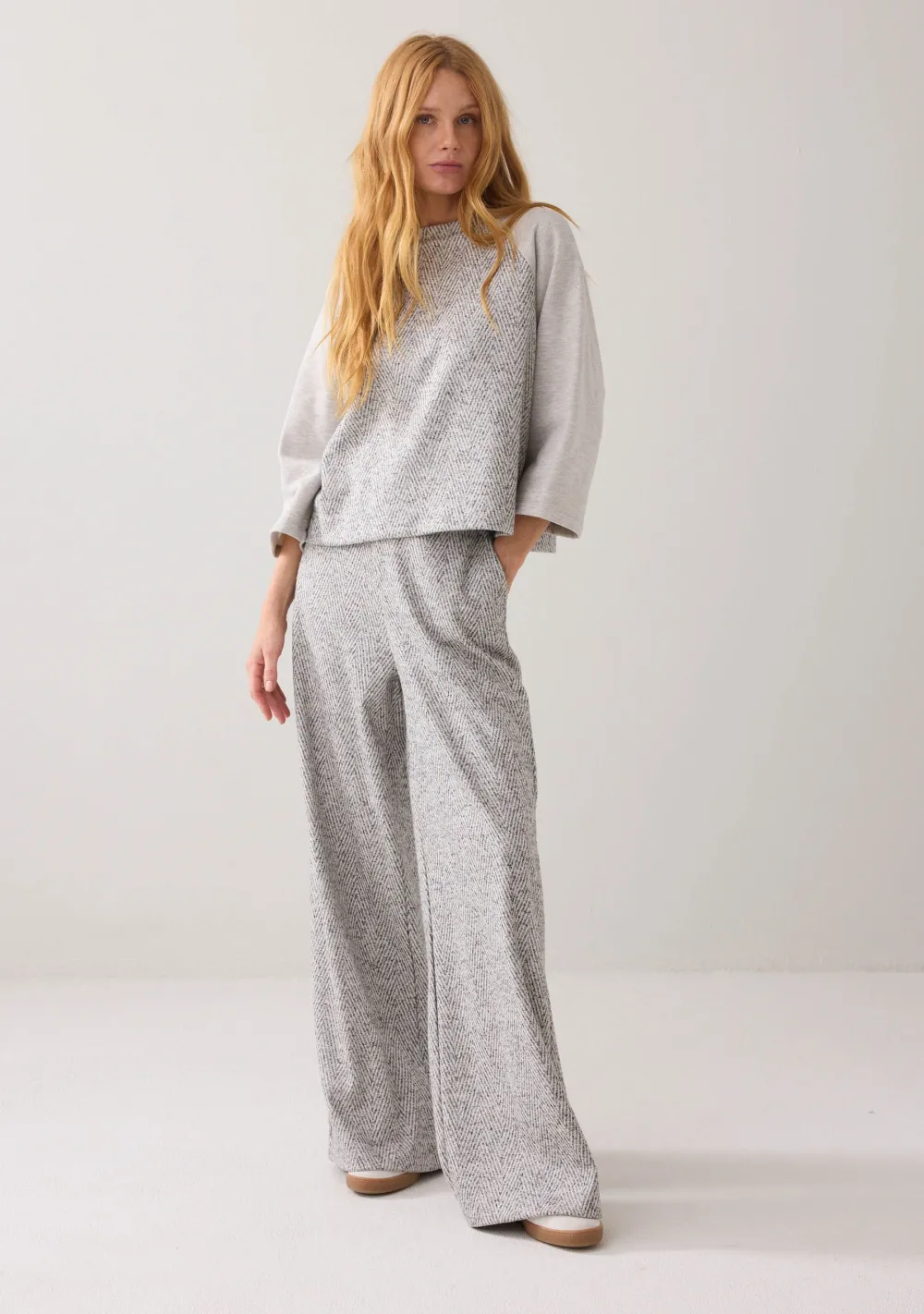 – Het model is 1.76m lang en draagt maat S