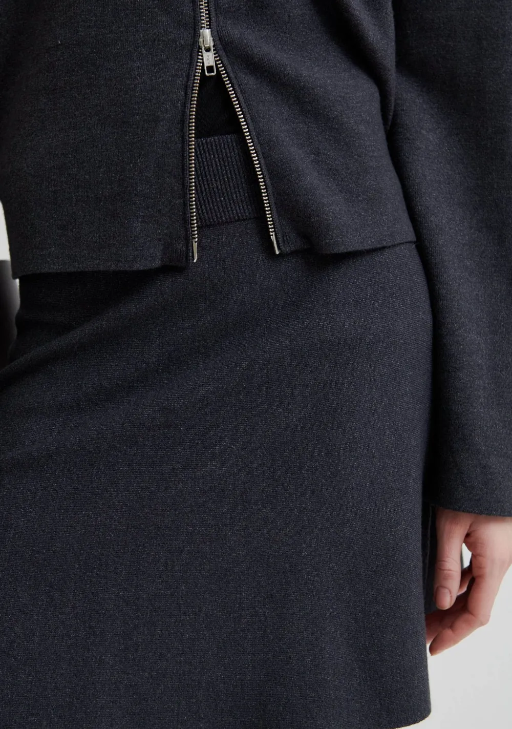 – Het model is 1.76m lang en draagt maat S