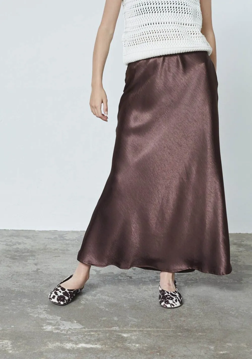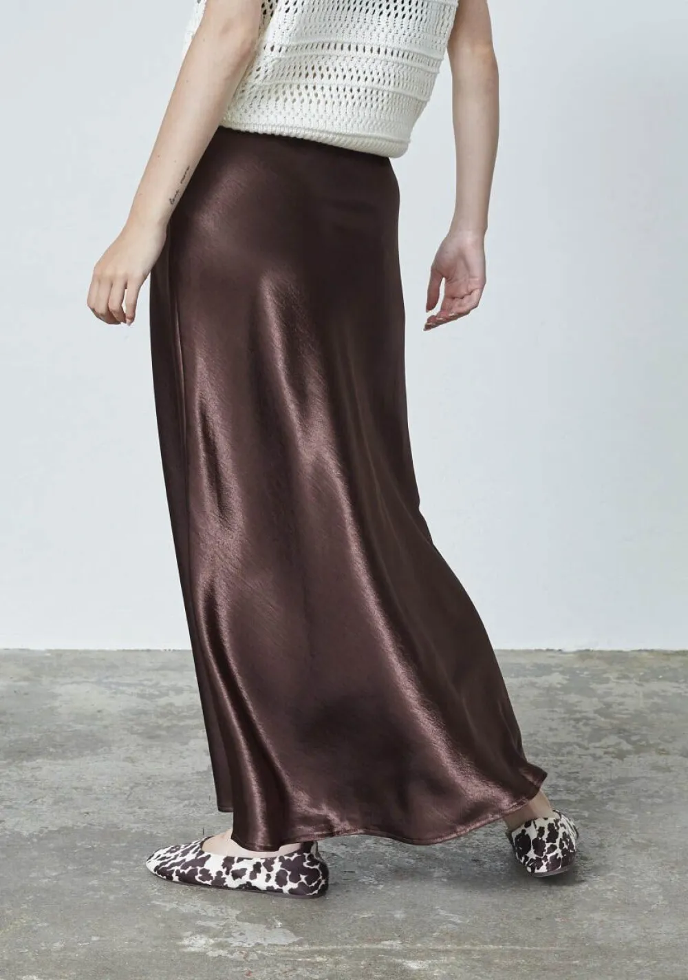 – Het model is 1.76m lang en draagt maat XS