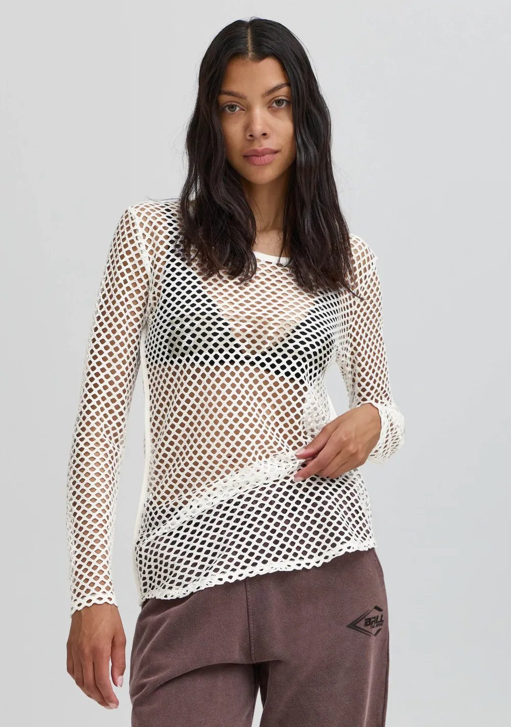 – Het model is 1.76m lang en draagt maat XS