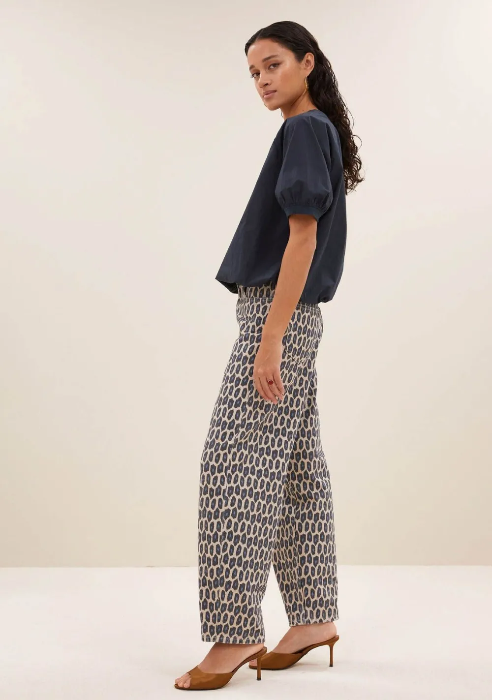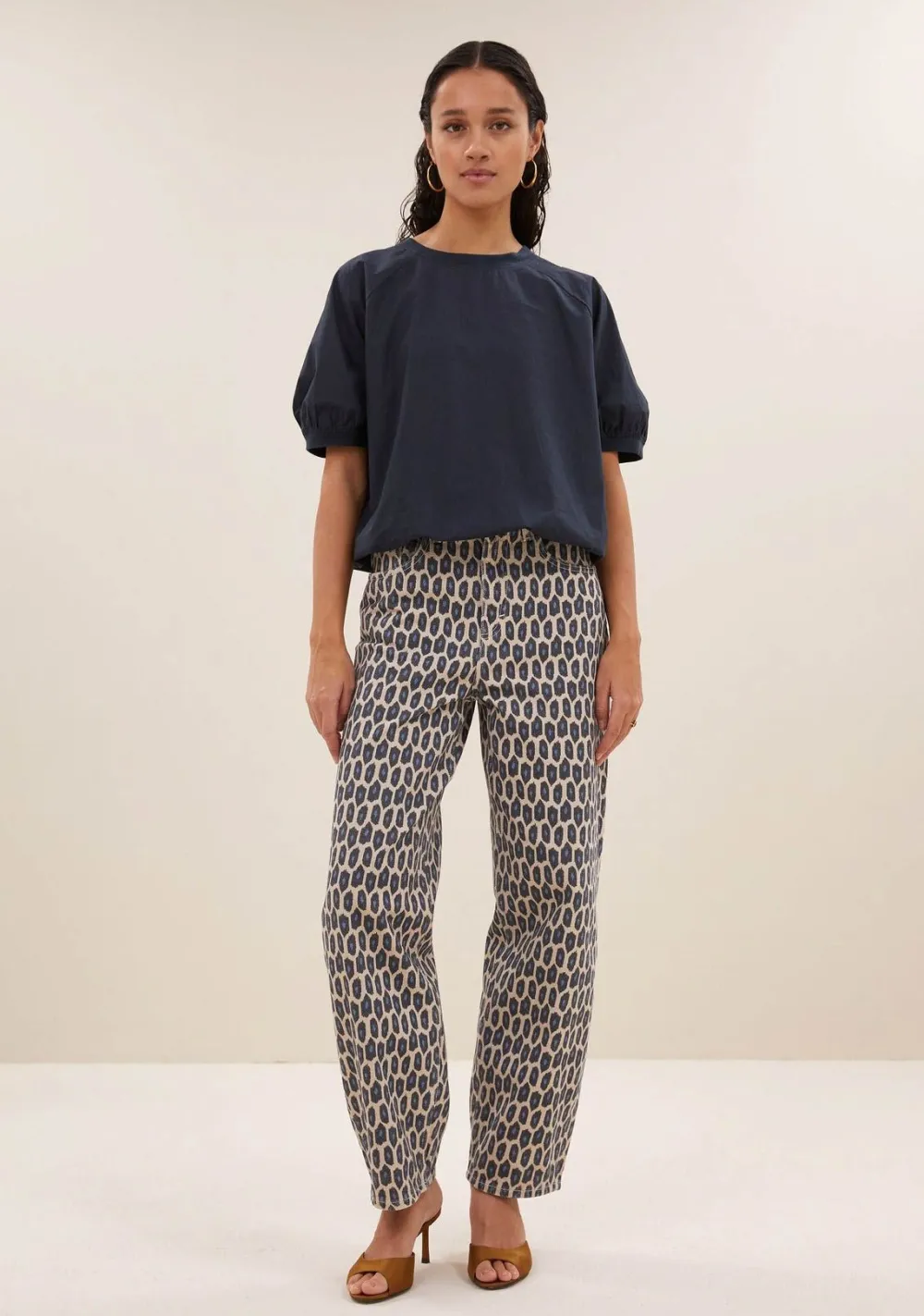 – Het model is 1.75m lang en draagt maat S
