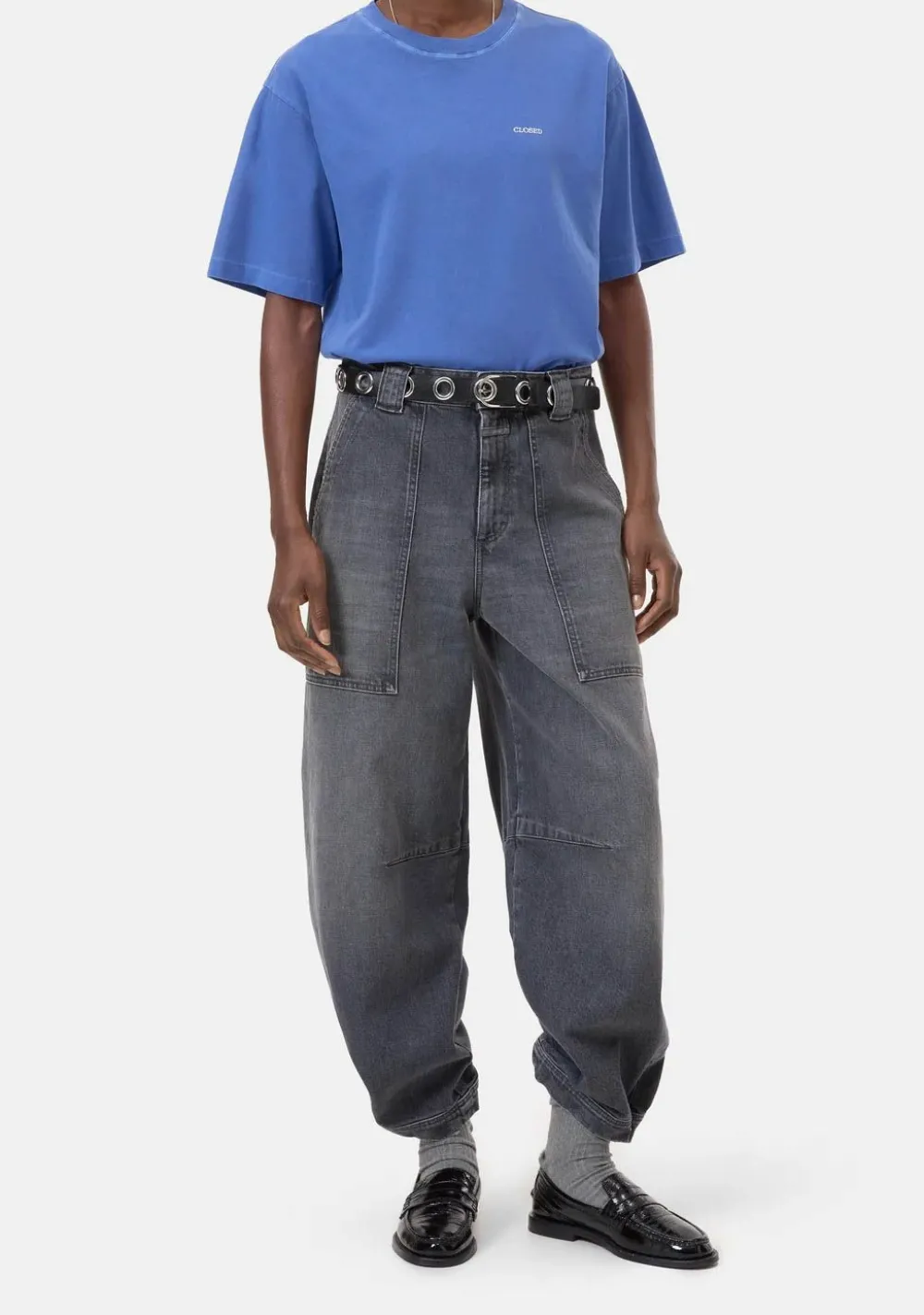 – Het model is 1.76m lang en draagt maat S