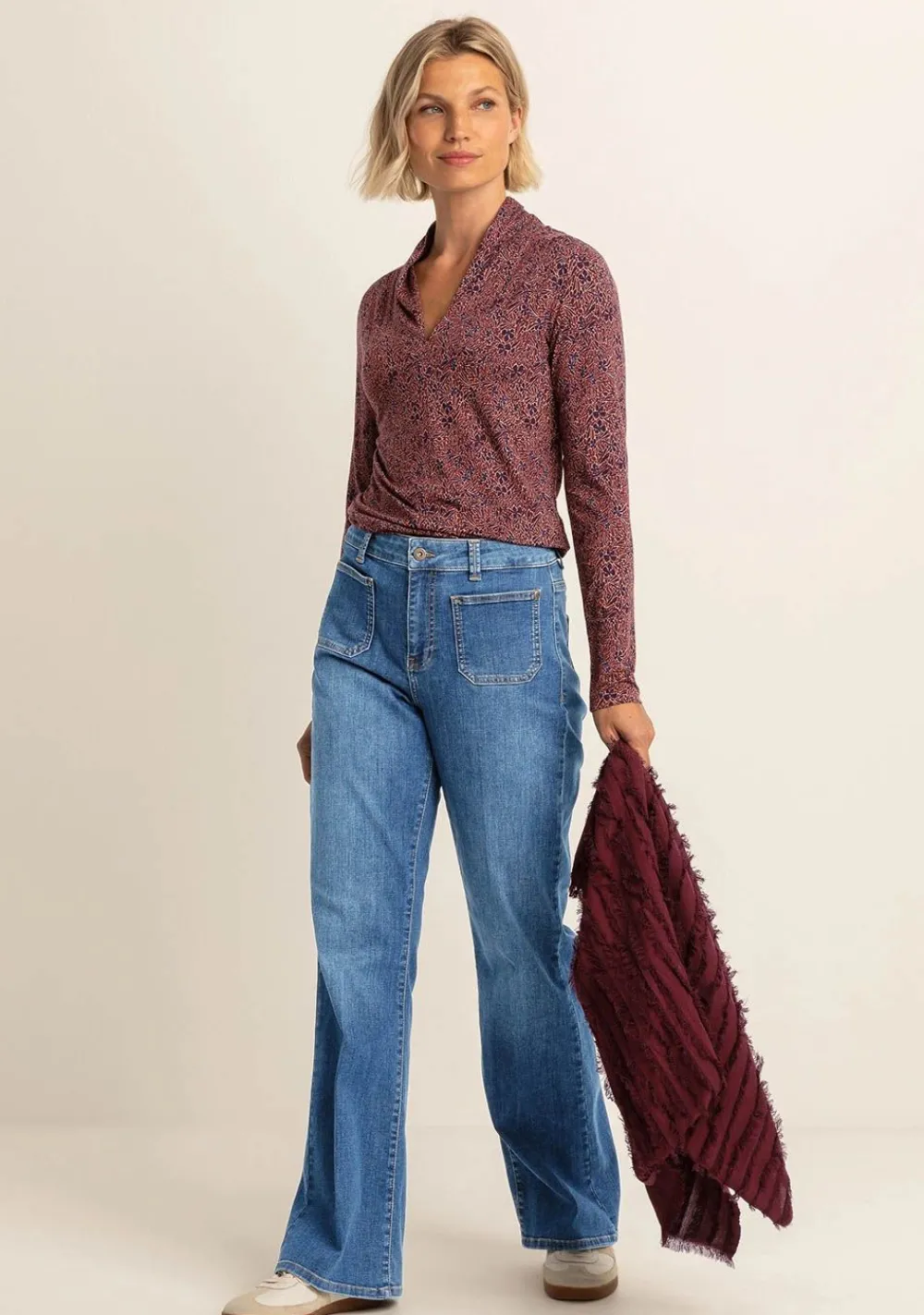 – Het model is 1.74m lang en draagt maat 36