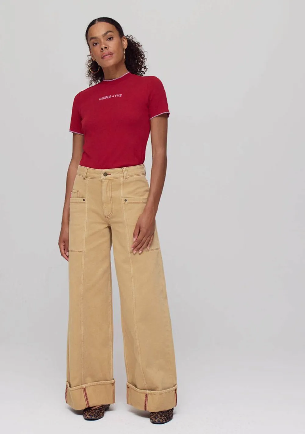 – Het model is 1.74m lang en draagt maat S