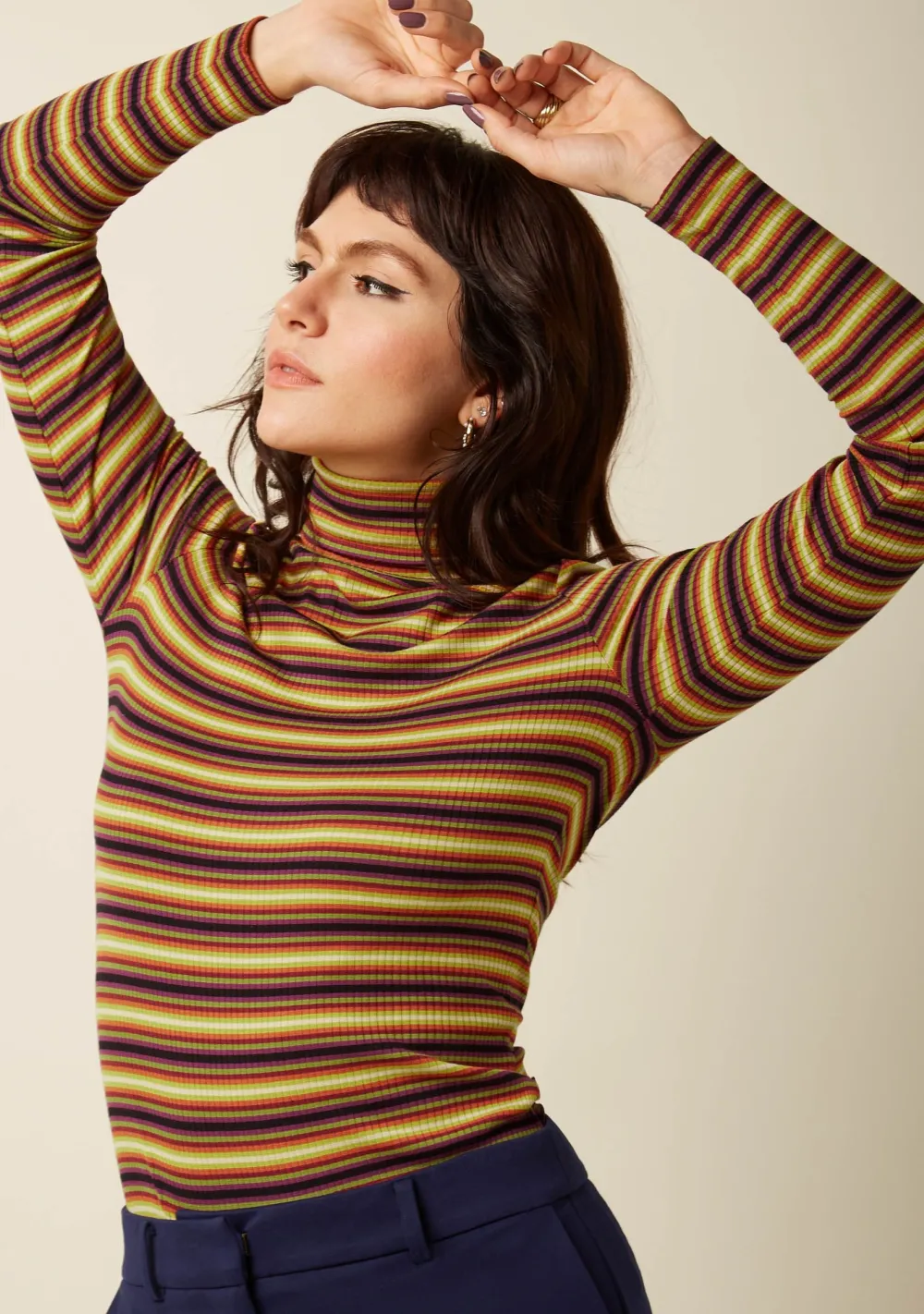 – Het model is 1.65m lang en draagt maat S