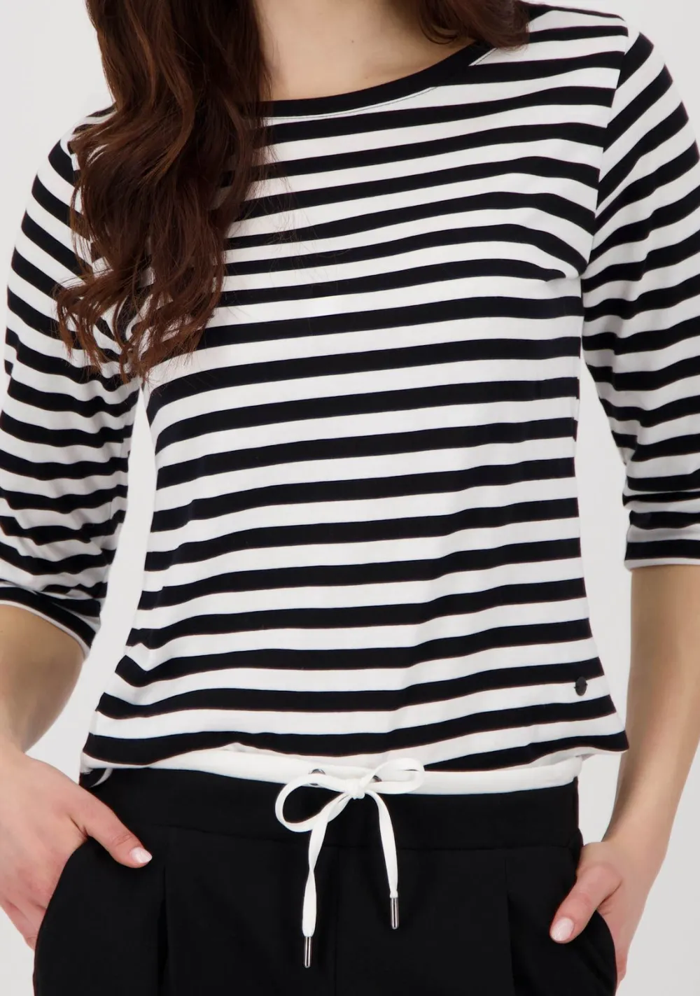 – Het model is 1.76m lang en draagt maat S