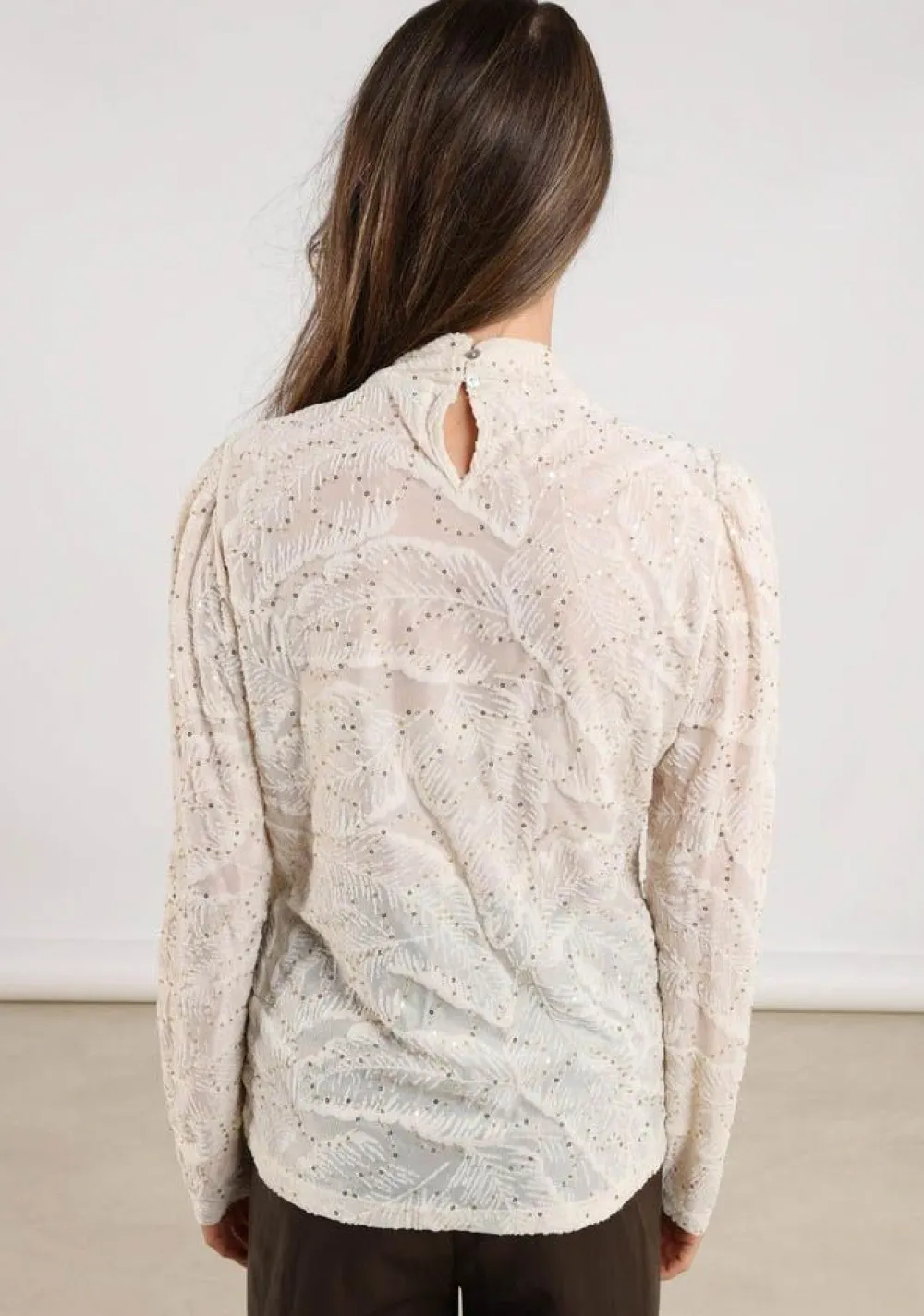 – Het model is 1.76m lang en draagt maat S