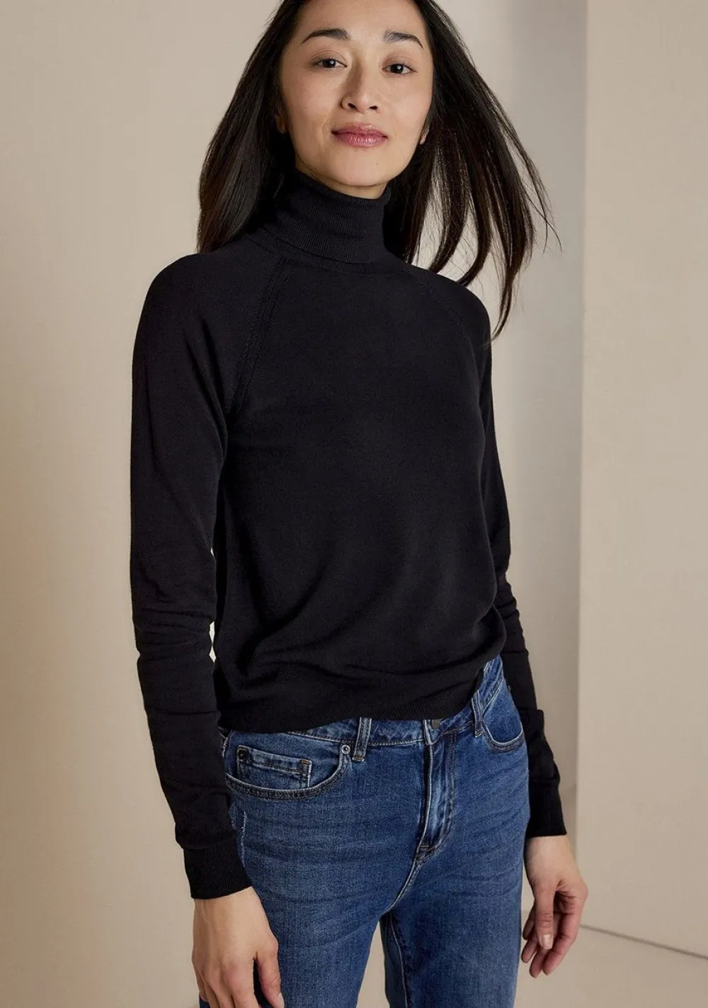 – Het model is 1.76m lang en draagt maat S