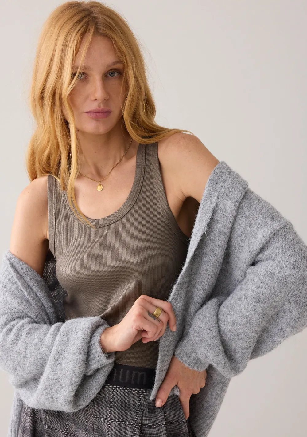 – Het model is 1.76m lang en draagt maat S