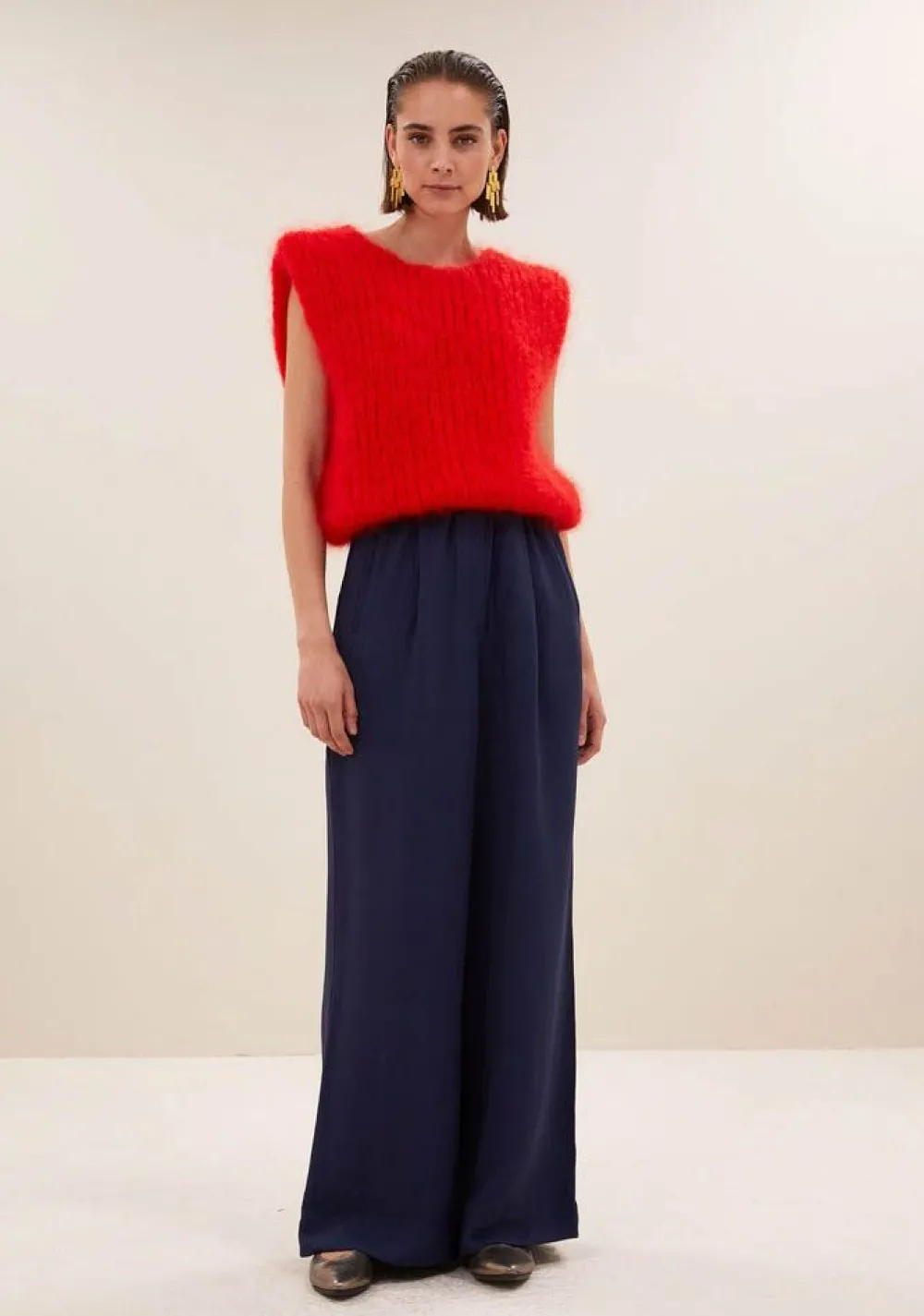– Het model is 1.78m lang en draagt maat S