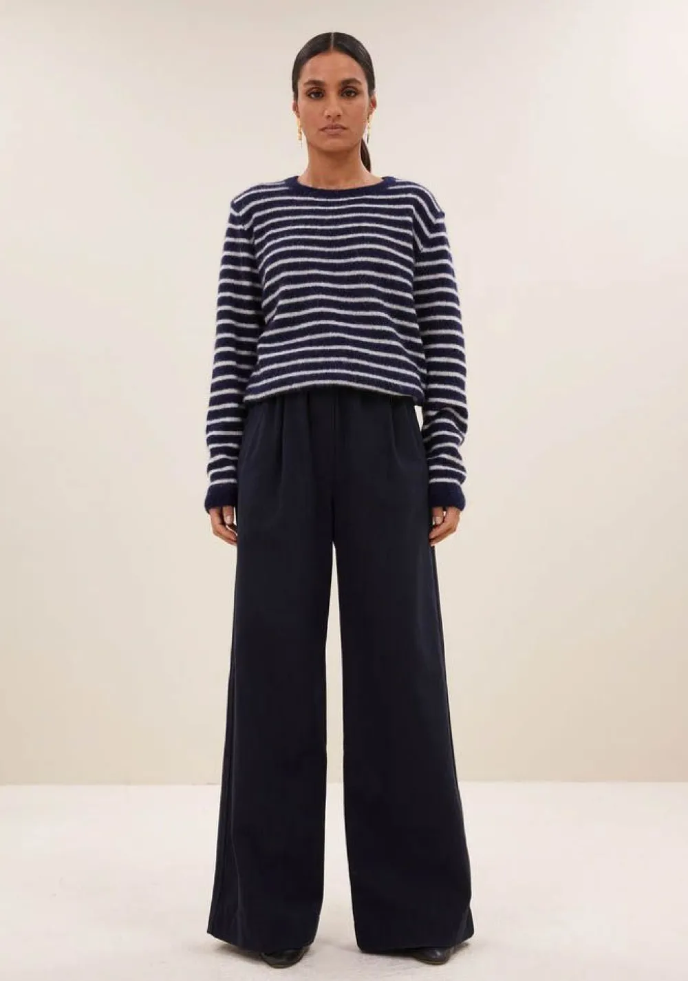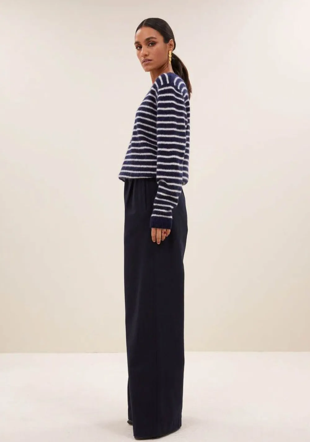 – Het model is 1.75m lang en draagt maat S