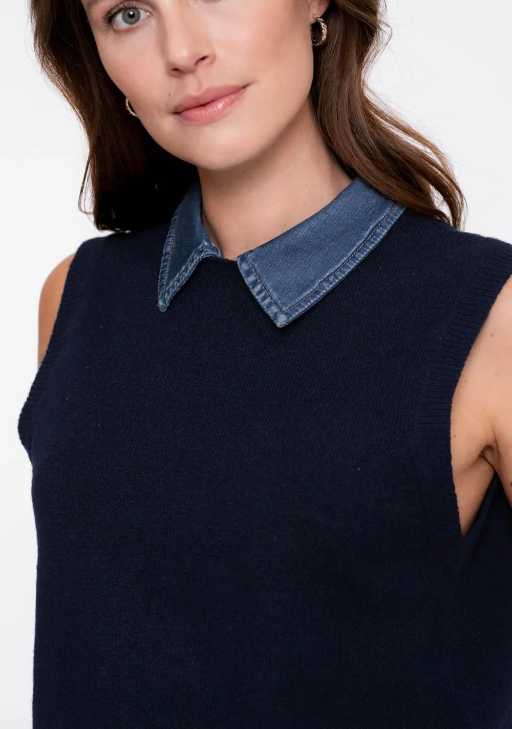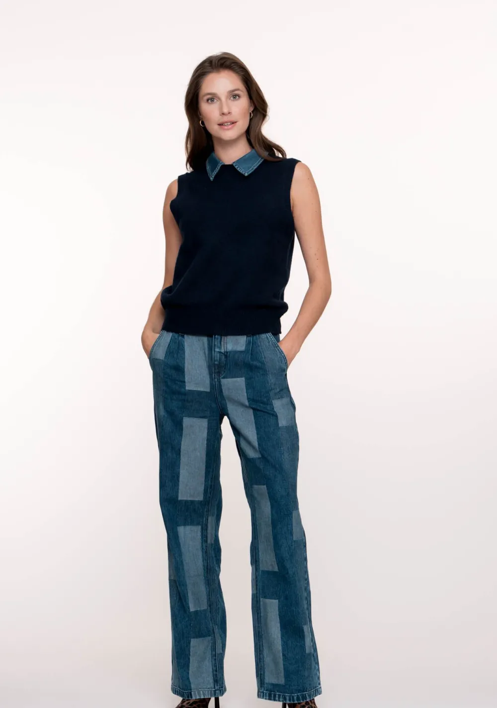– Het model is 1.76m lang en draagt maat S